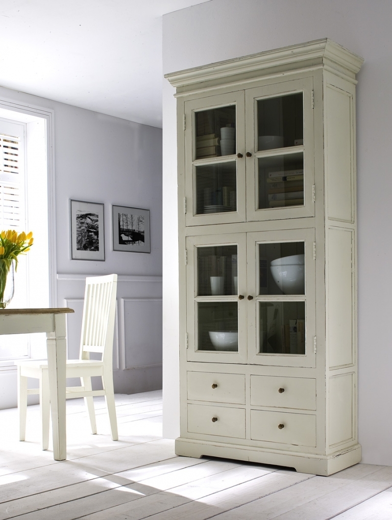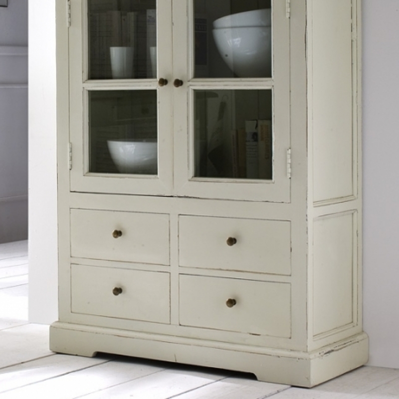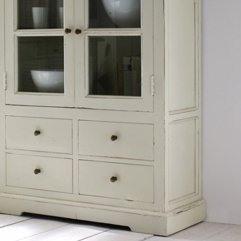 Knihovna má dvě prosklené části, v každé z nich se nachází jedna bytelná police. Spodní třetina knihovny je tvořená čtyřmi stejně velikými zásuvkami s kulatými úchytkami.