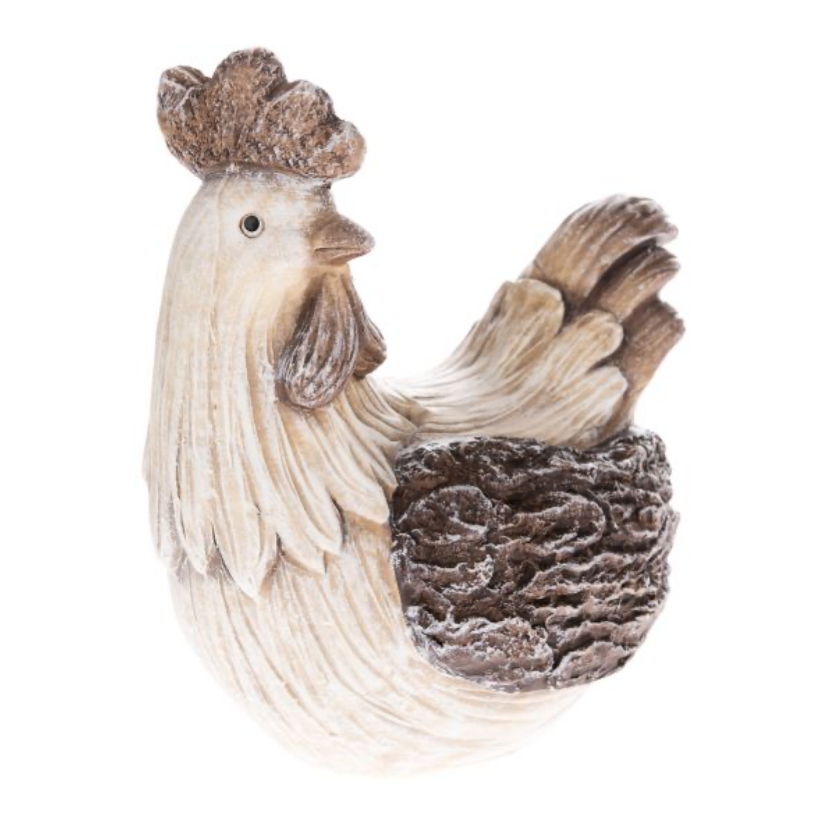 Kohout je ve světlých přírodních tónech, s propracovanými detaily v podobě strukturovaného peří. Parádu udělá samostatně i jako součást výzdoby s dalšími prvky.