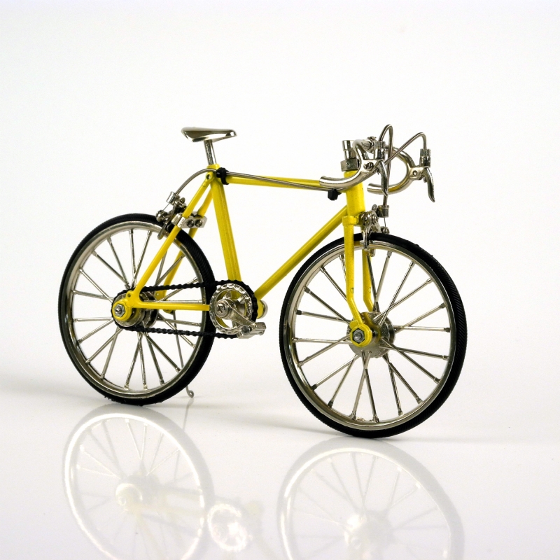Rozměry modelu: 19x11,5x4,5cm. Průměr kola 8cm. Funkčí pohon kola, lanka brzd...