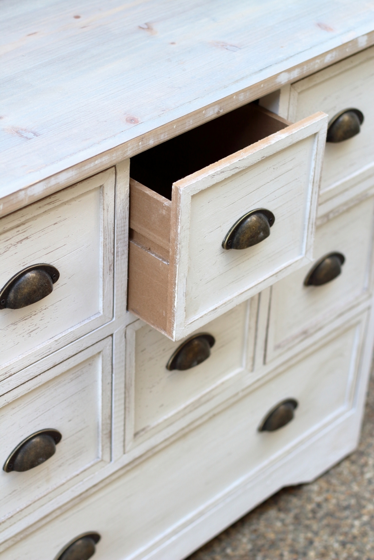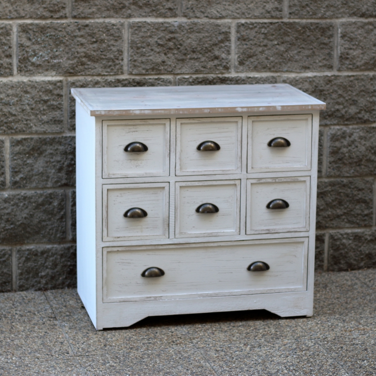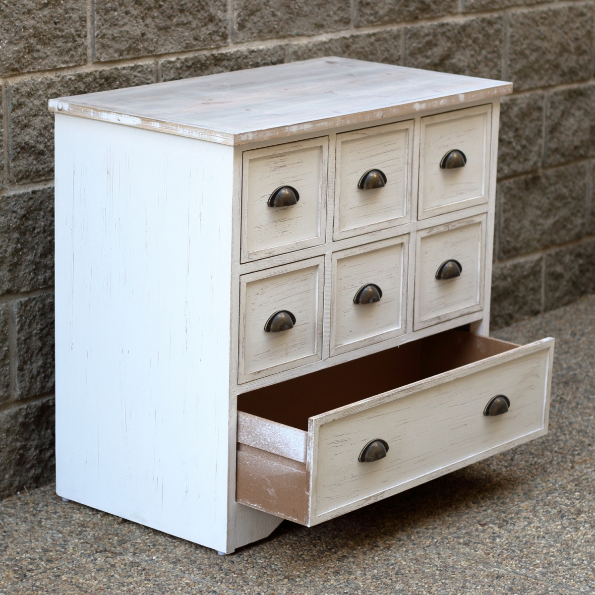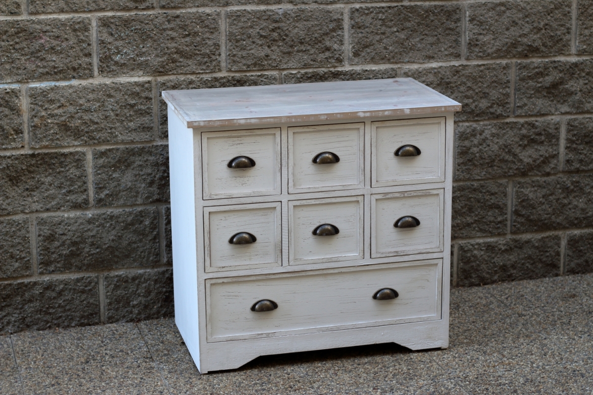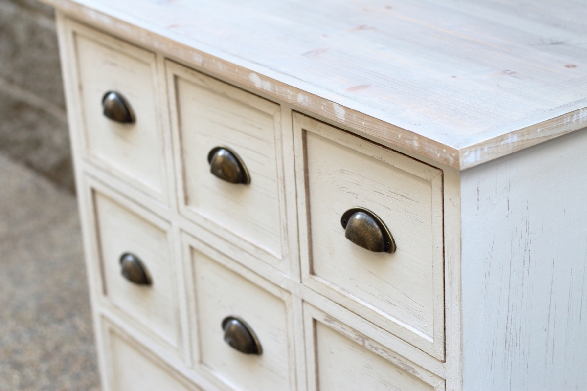 Komoda se skládá z 6 malých šuplíků a 1 velkého. Do malých přihrádek můžete umístit důležité drobnosti, jako šití, psací potřeby nebo fotky a velká přihrádka skvěle poslouží jako místo na uskladnění dokumentů, smluv nebo účtenek.