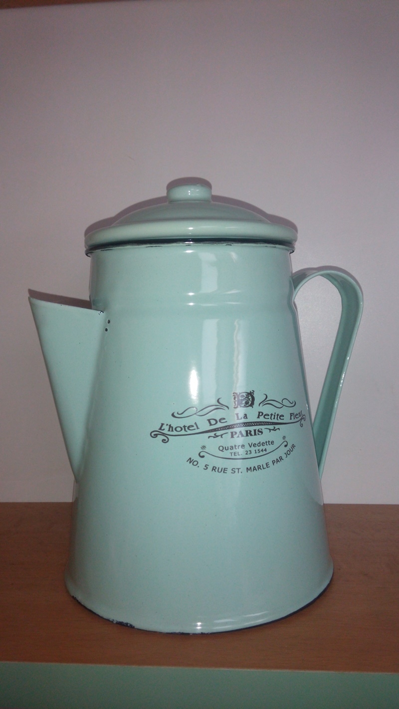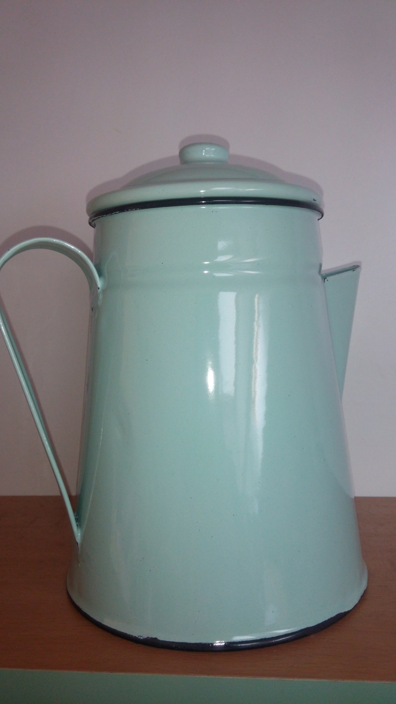 Konvička z oblíbeného smaltu Vás vnese vzpomínkami na chalupu k babičce.