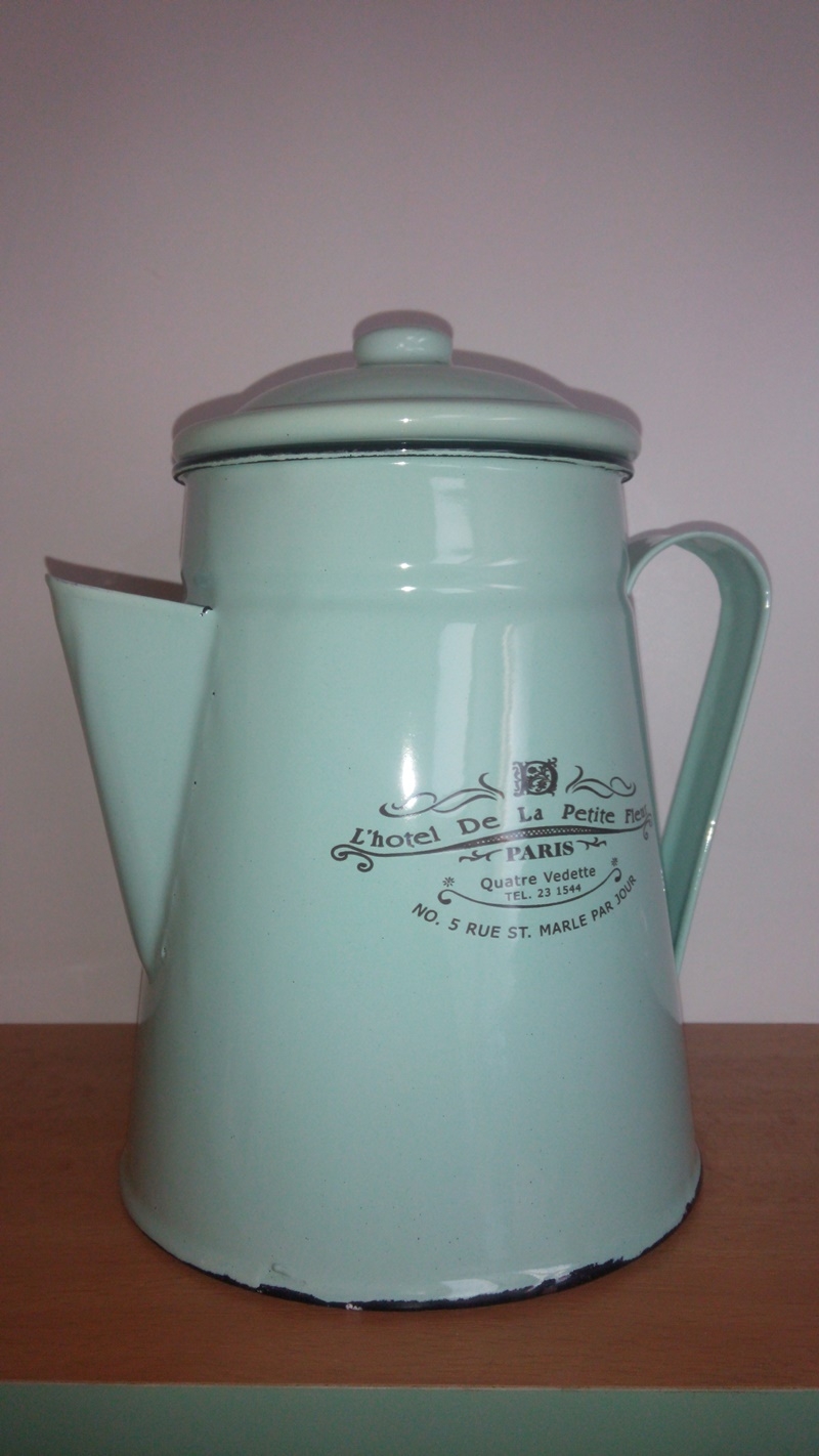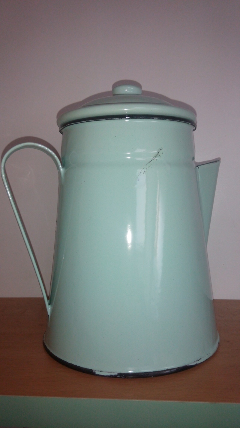 Konvička z oblíbeného smaltu Vás vnese vzpomínkami na chalupu k babičce.