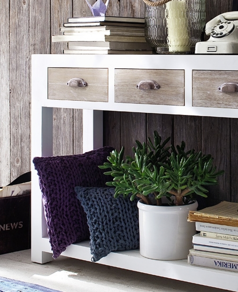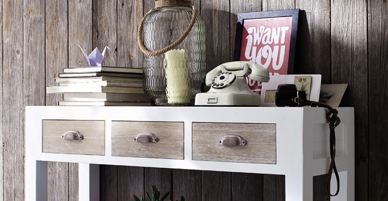 Konzolový stůl z kolekce Sofie v lehce rustikálním stylu skvěle zapadne do interiéru laděného do venkovského stylu.