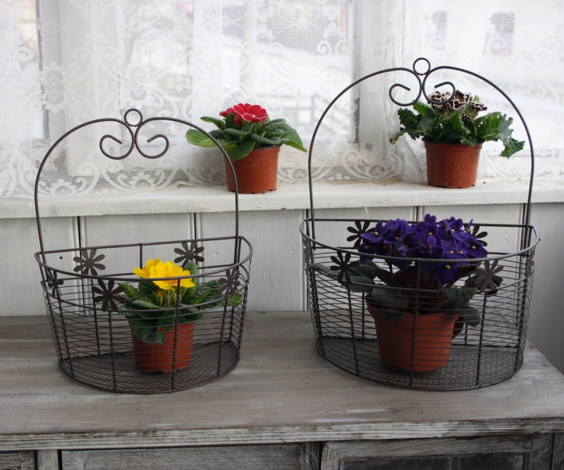 Košík drátěný antik. sada dvou košíků Vám rozzáří Vaši zahradu. Do košíku dáte pěkně barevnou květinu a máte krásnou jarní výzdobu za pár minut! Košík Vám zútulní stěnu u které budete rádi sedávat a popíjet svůj oblíbený nápoj.