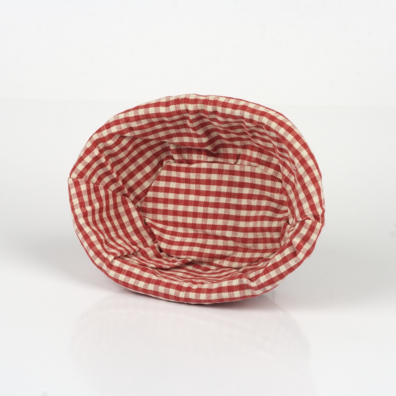 Košík proutěný 21x15x7 cm s červeno bílou kostkovou látkou. Alternativní název: ošatka