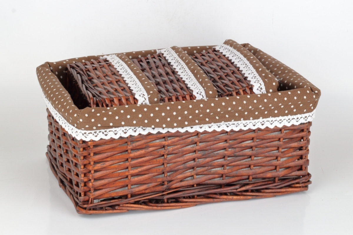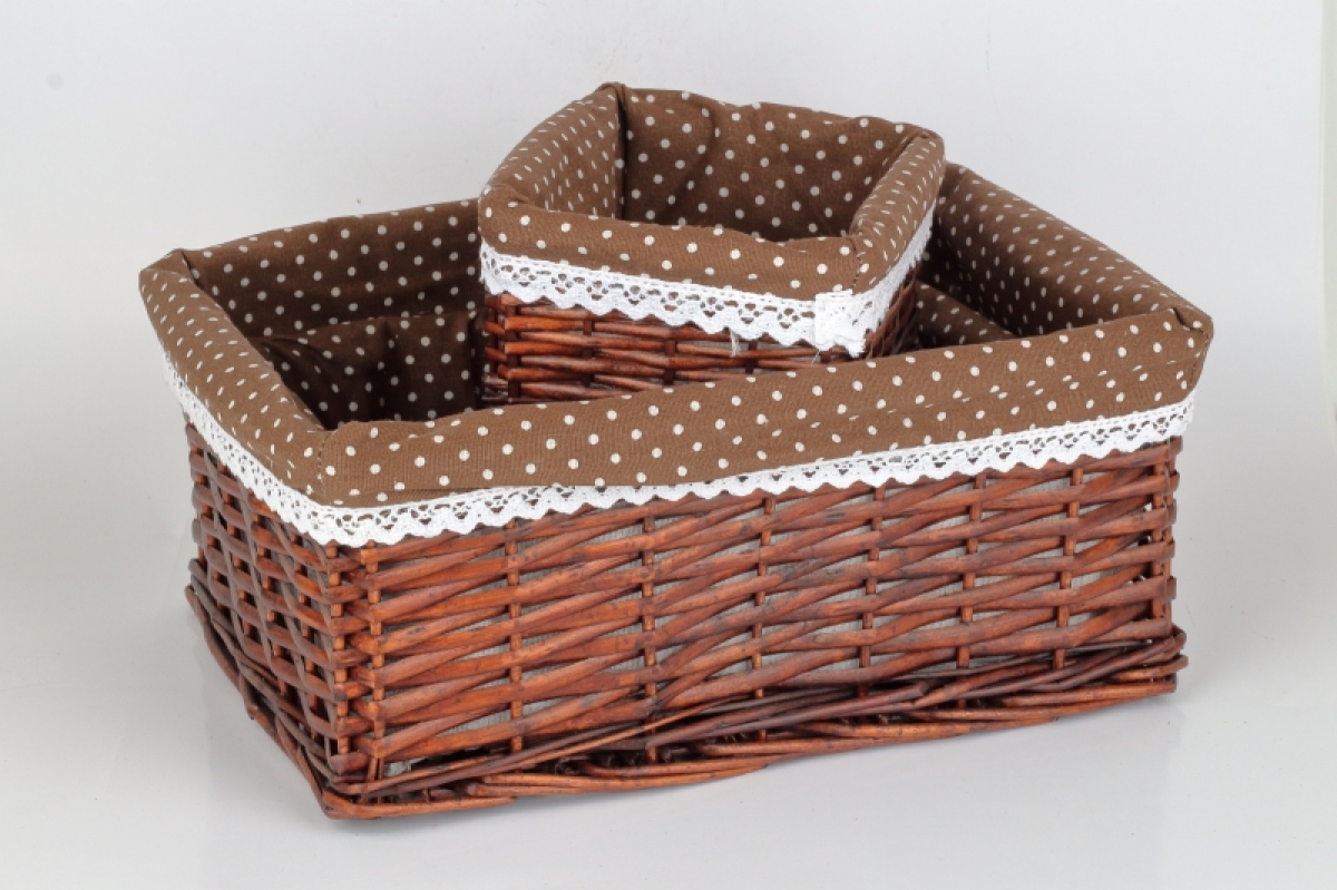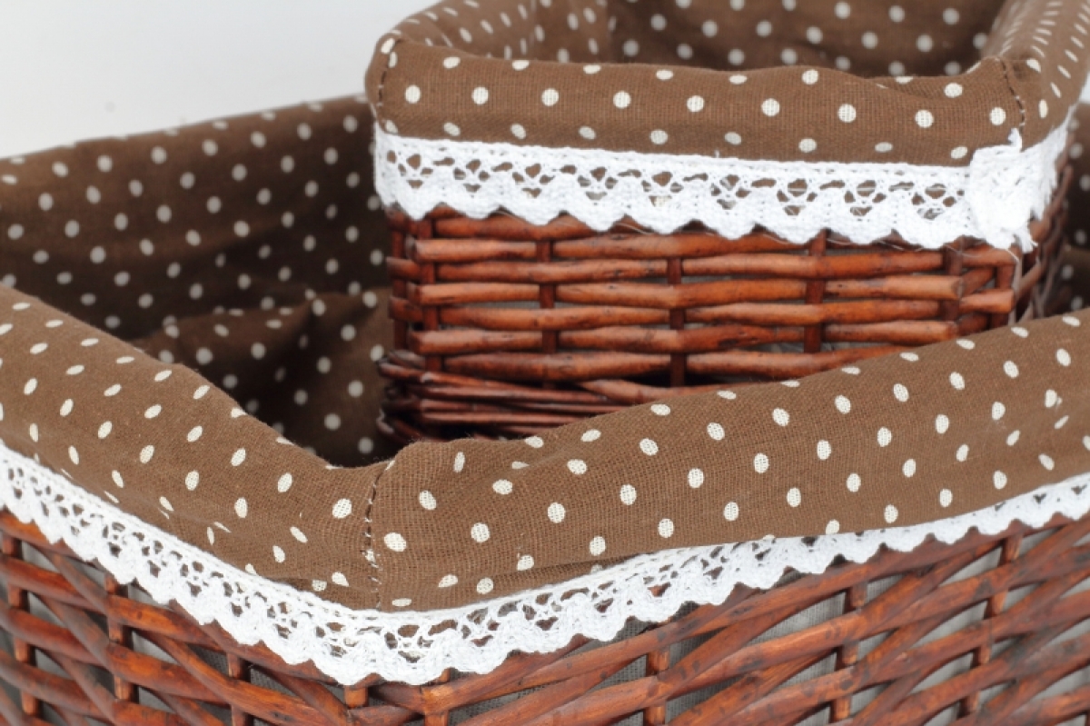Košík je vystlaný stylovou látkou a bude krásně vypadat především ve venkovsky zařízené domácnosti.