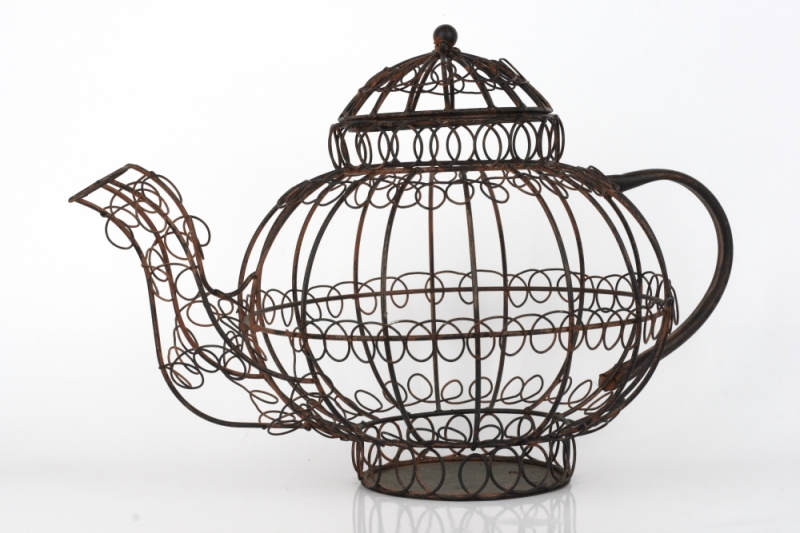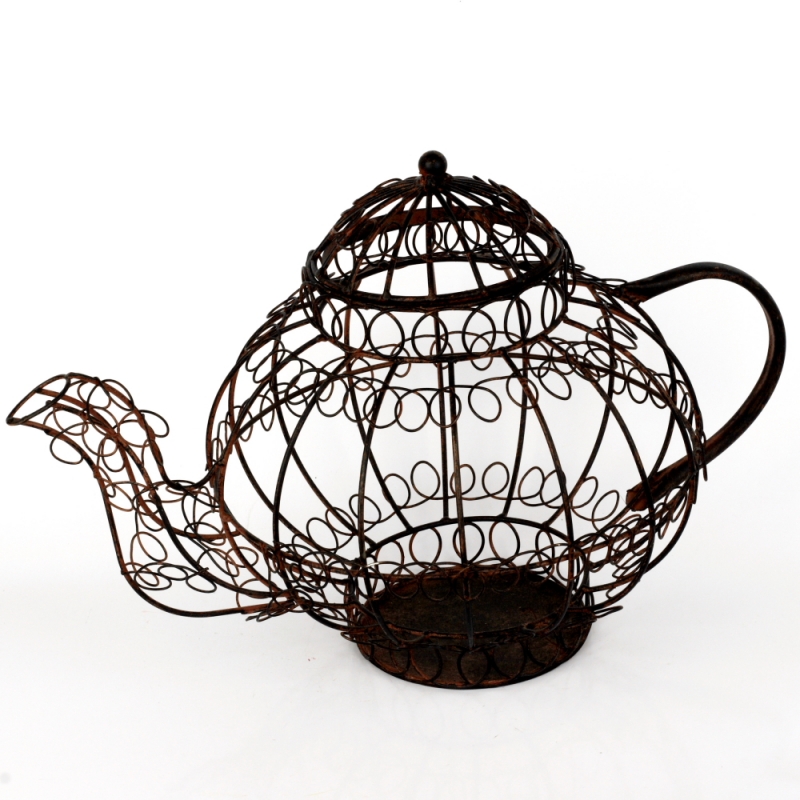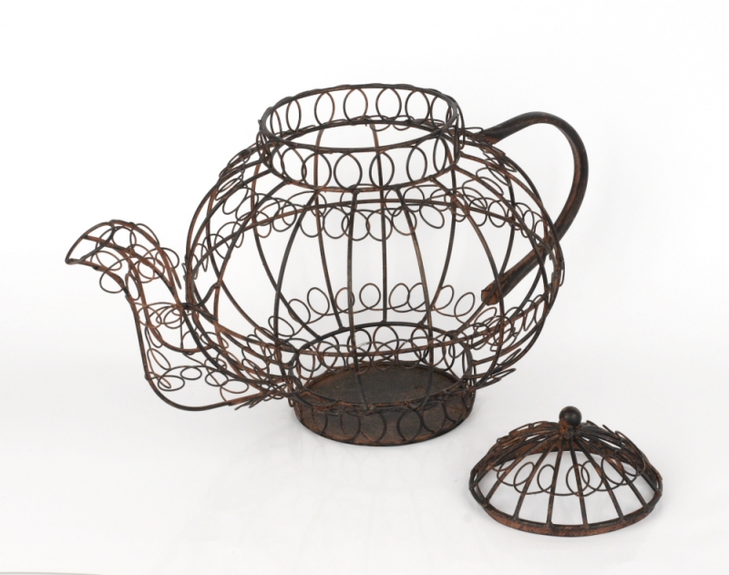 Kovová dekorace konvice 25x40x25cm, do které můžete vložit třeba květináč s rostlinou nebo svíčky a různé drobné dekorace.