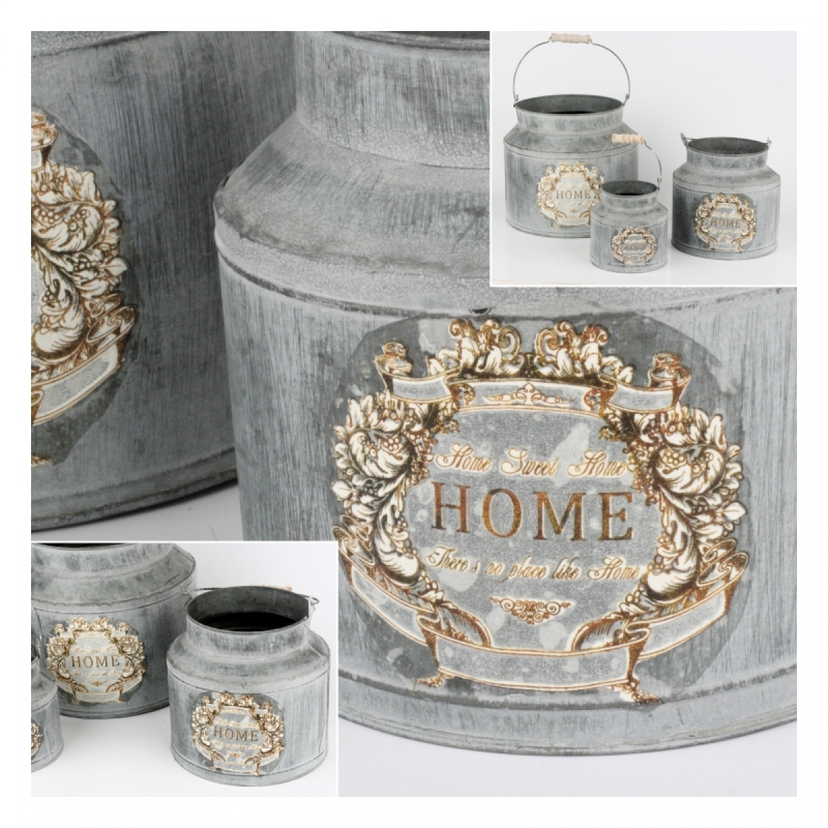 Kovová dekorační bandaska HOME (sada 3ks) 34/27/20cm ve třech velikostech zaujme výraznou patinou a elegantním zdobením na přední straně.