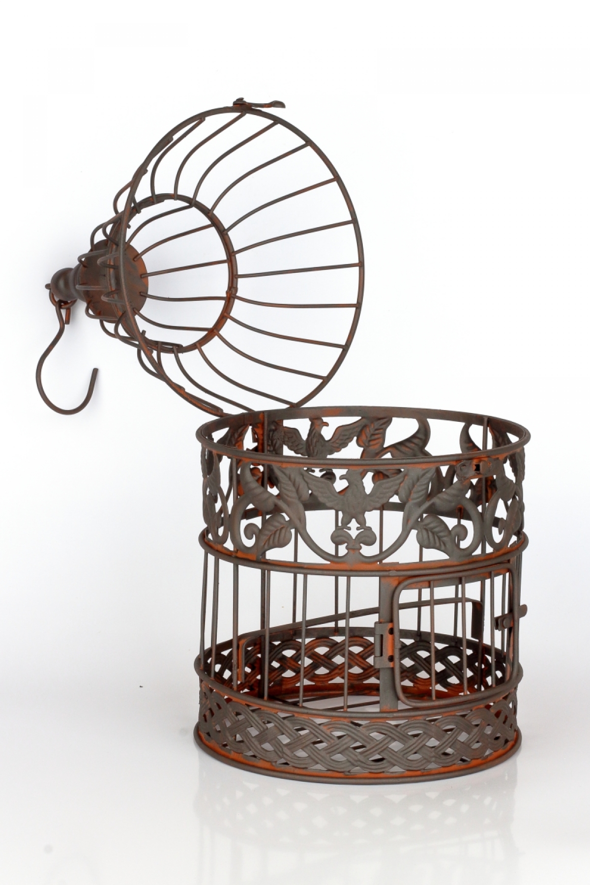 Rozměry: celková výška 45cm, výška klece 40cm, průměr 20cm