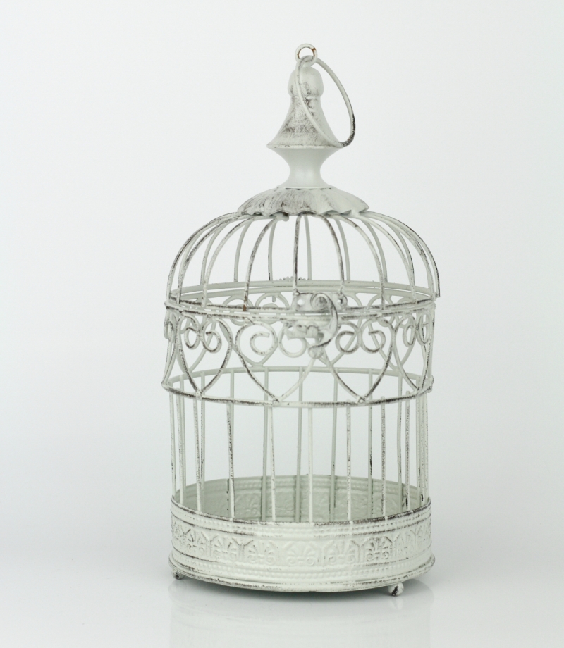 Svatební dekorace kovová klec bílá 14x28cm se jednoduše promění v originální lucernu nebo netradiční stojan na květiny.