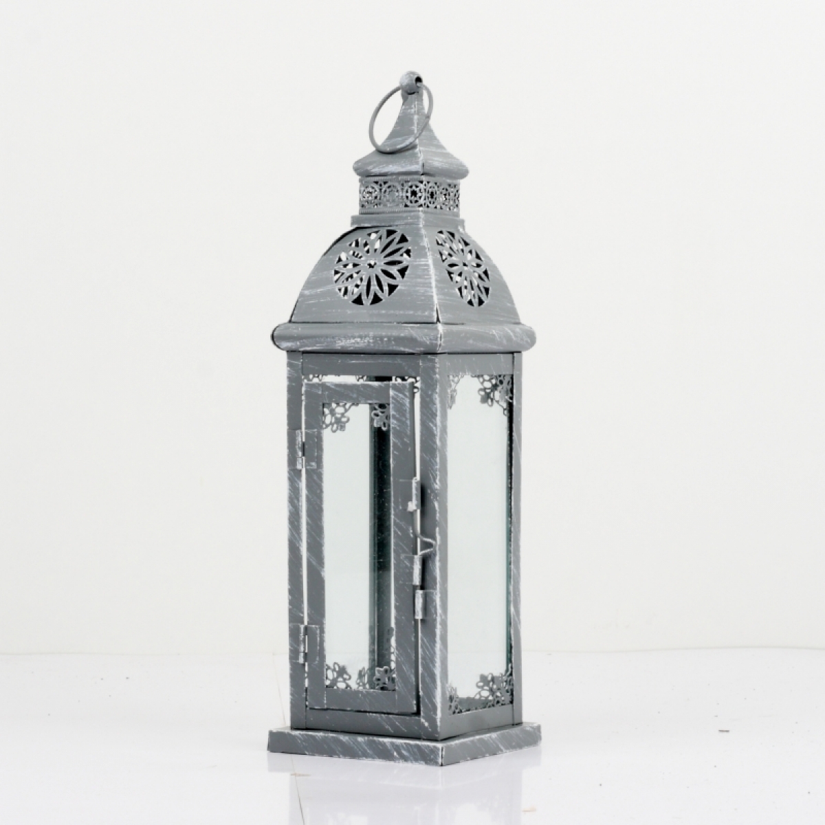 Kovová lucerna šedá s patinou zdobená 52cm rozzáří světlem svíčky celý prostor obývacího pokoje, chodby i venkovní sezení pod zastřešenou pergolou. Příjemnou a útulnou atmosféru si můžete vytvořit kdekoliv budete chtít.