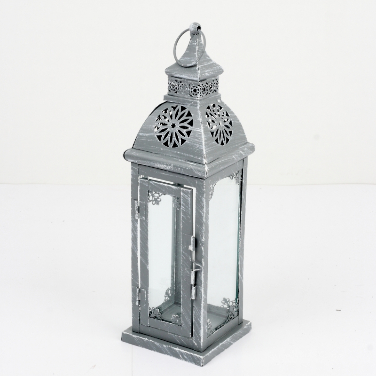 Kovová lucerna šedá s patinou zdobená 52cm