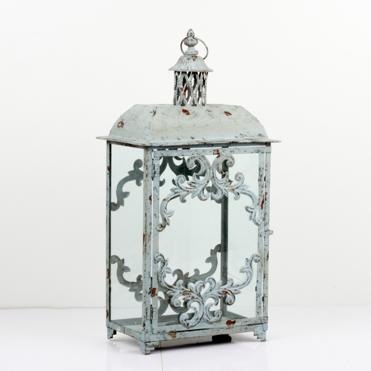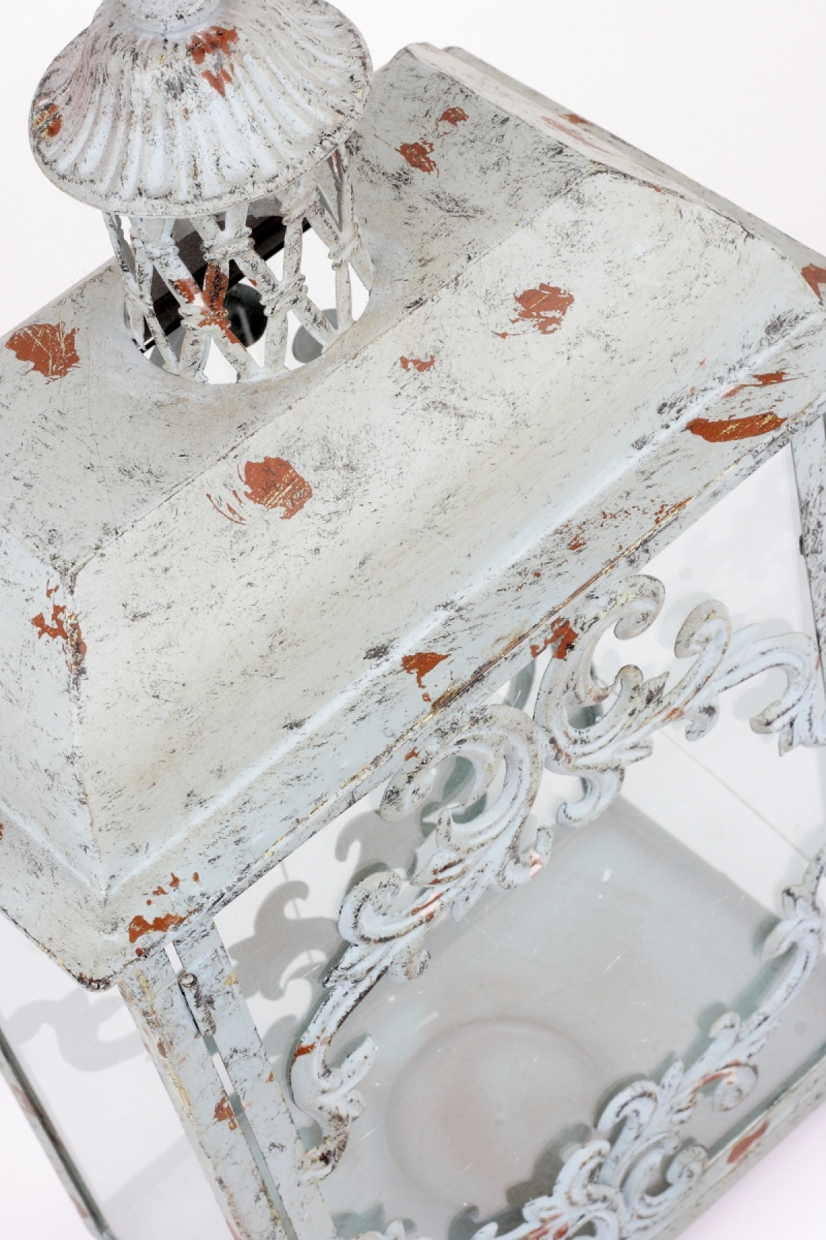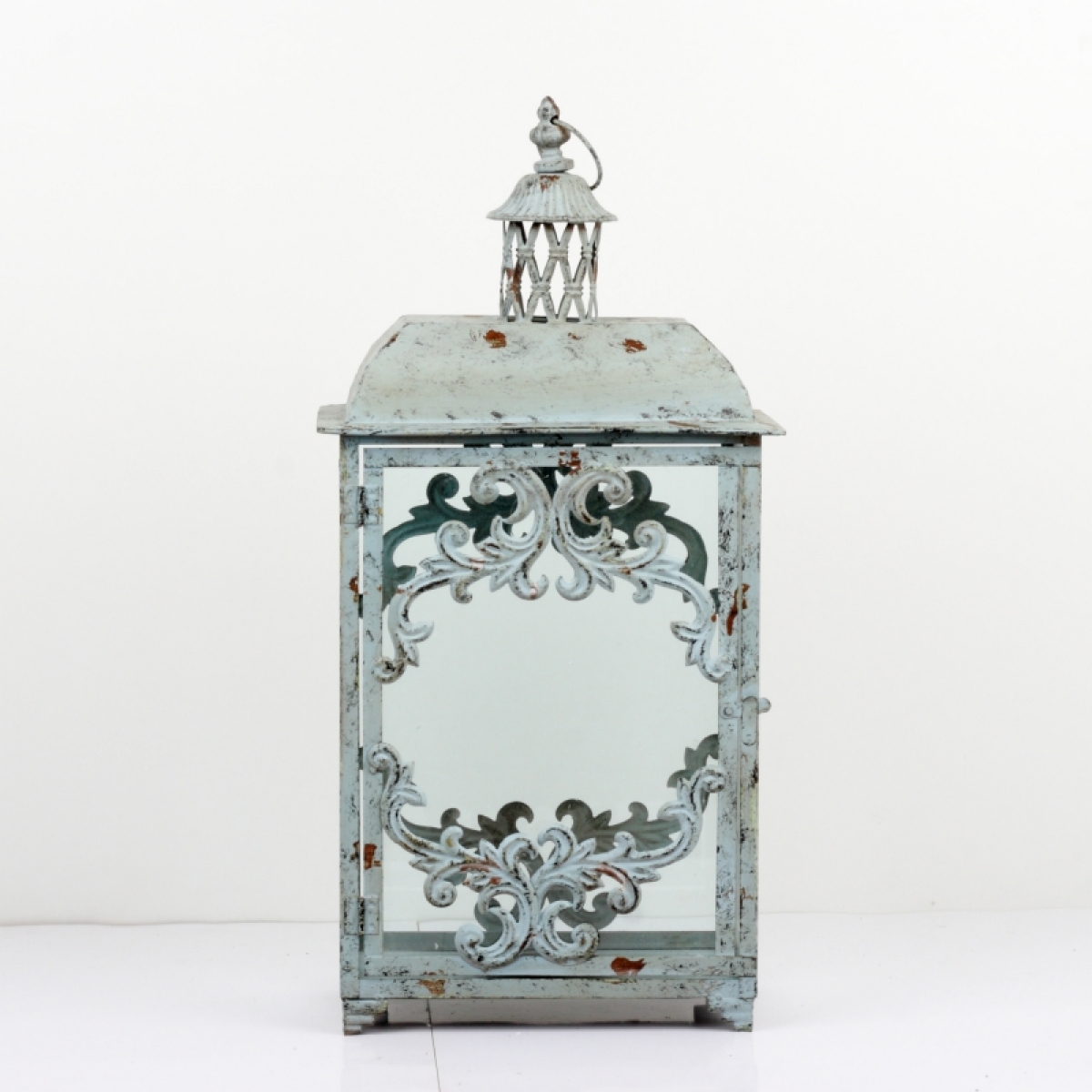 Kovová lucerna šedá zdobená 63x32x21cm II.jakost