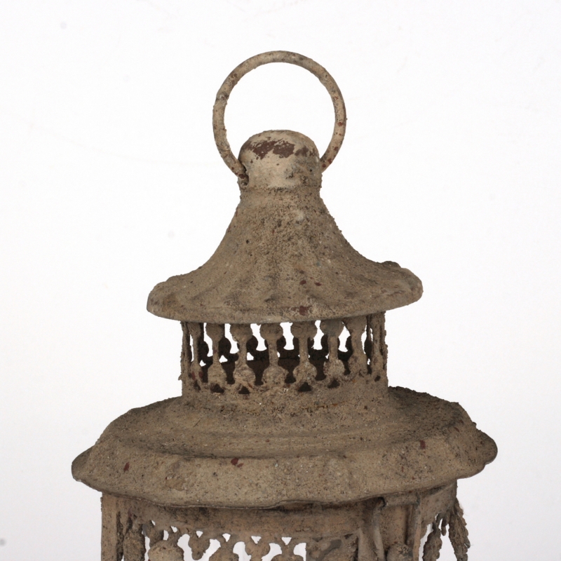 Kovová lucerna starodávná 20cm jakoby byla právě objevena v nejzapadlejším koutu staré půdy. Její výrazná patina a imitace rzi dělá z obyčejné lucerny originální vintage kousek s duší.