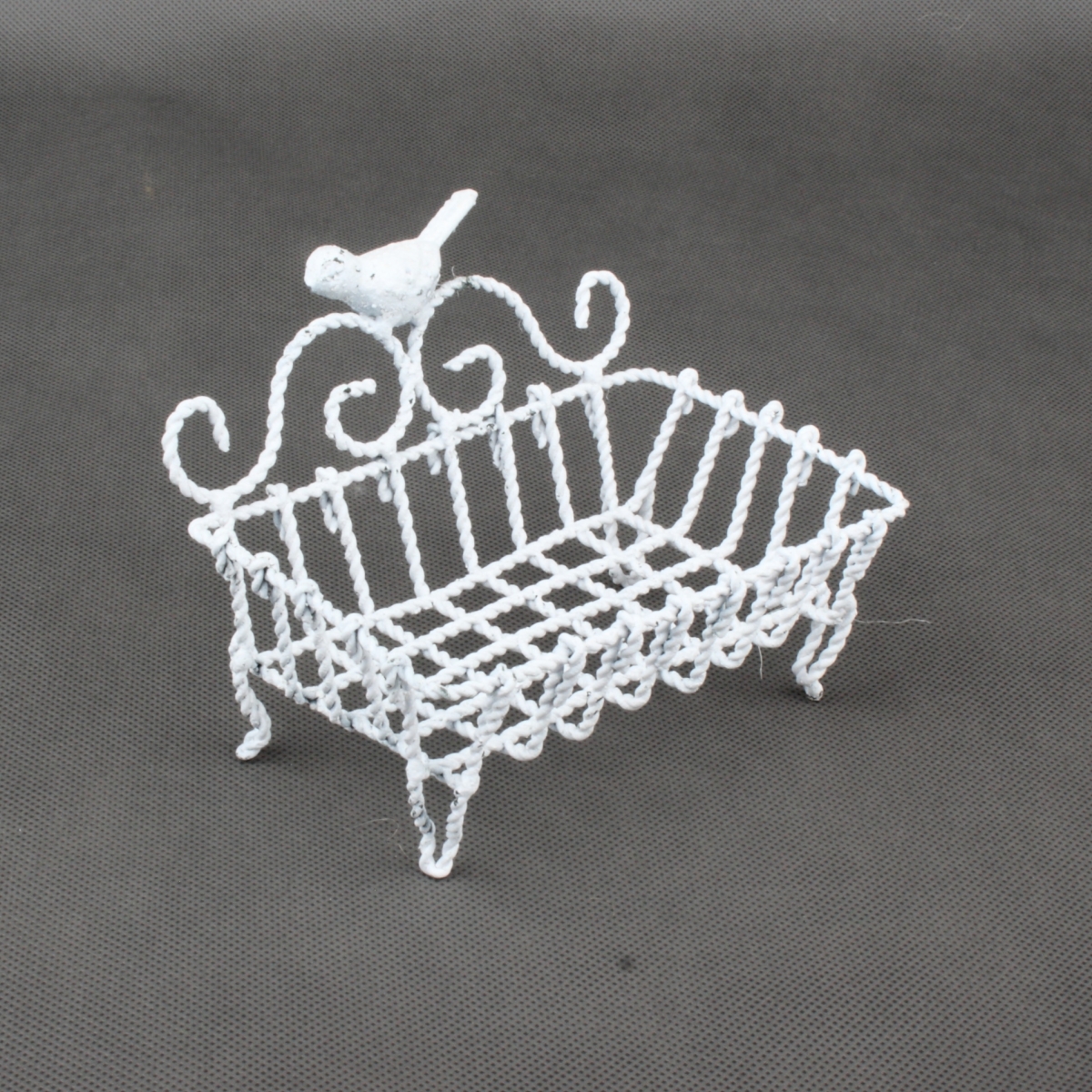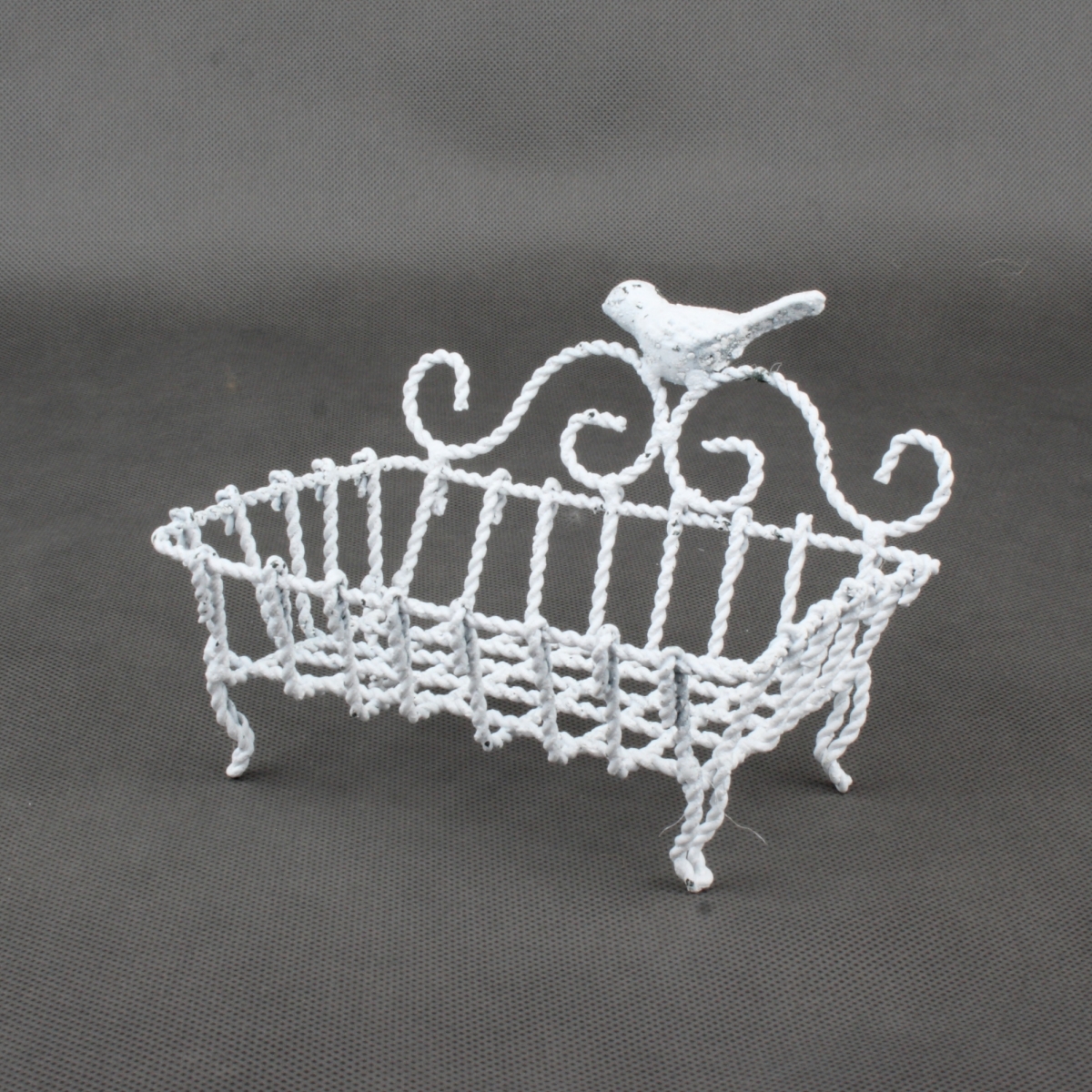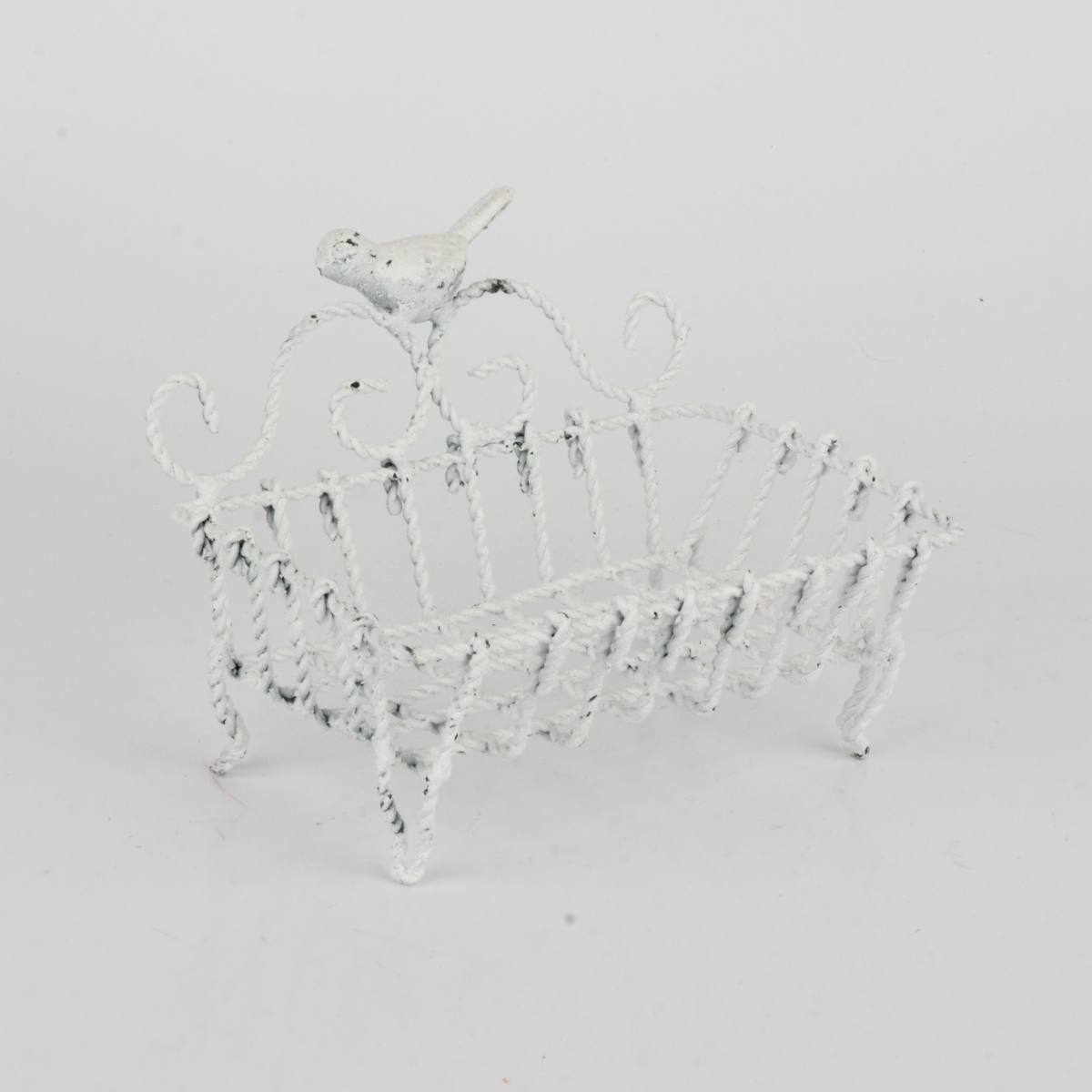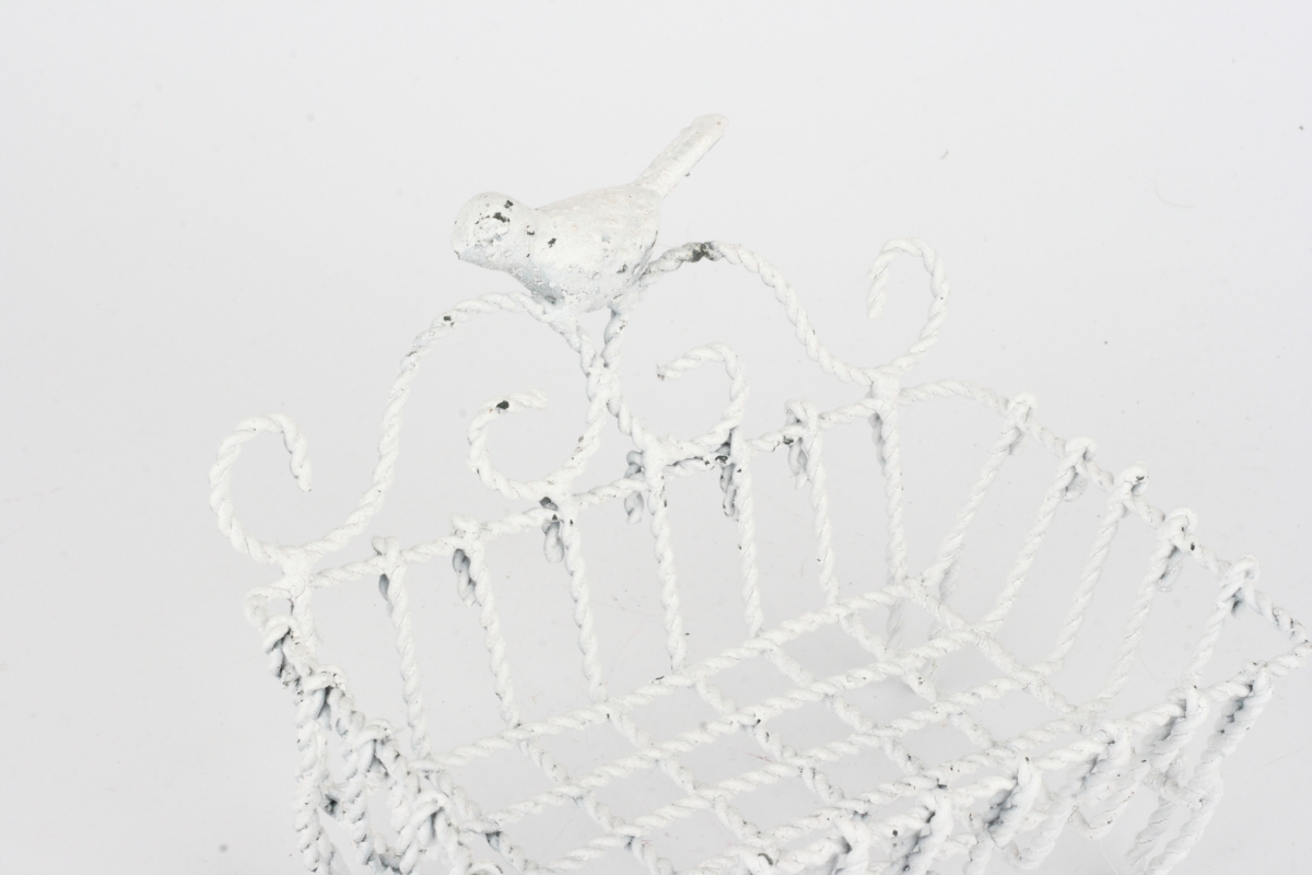 Kovová mýdlenka bílá s ptáčkem 14x11x10,5cm
