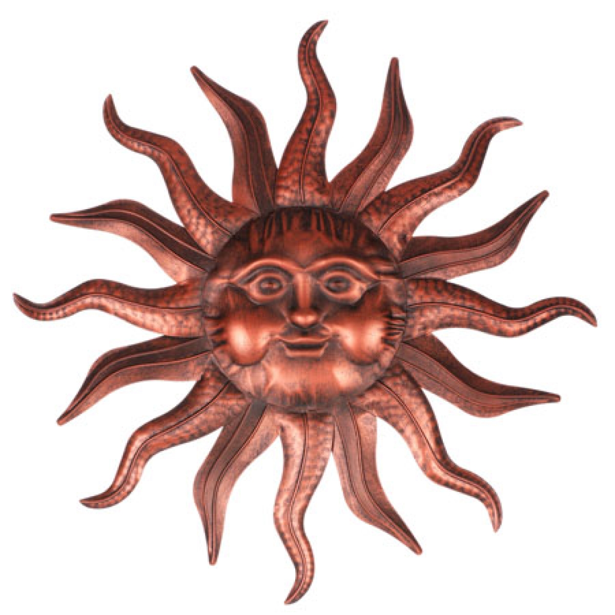 Kovová nástěnná dekorace slunce v měděné barvě s tmavou patinou se na vás bude usmívat z každé zdi, na kterou ji zavěsíte. Navodí vám příjemné chvíle k odpočinku a relaxaci.