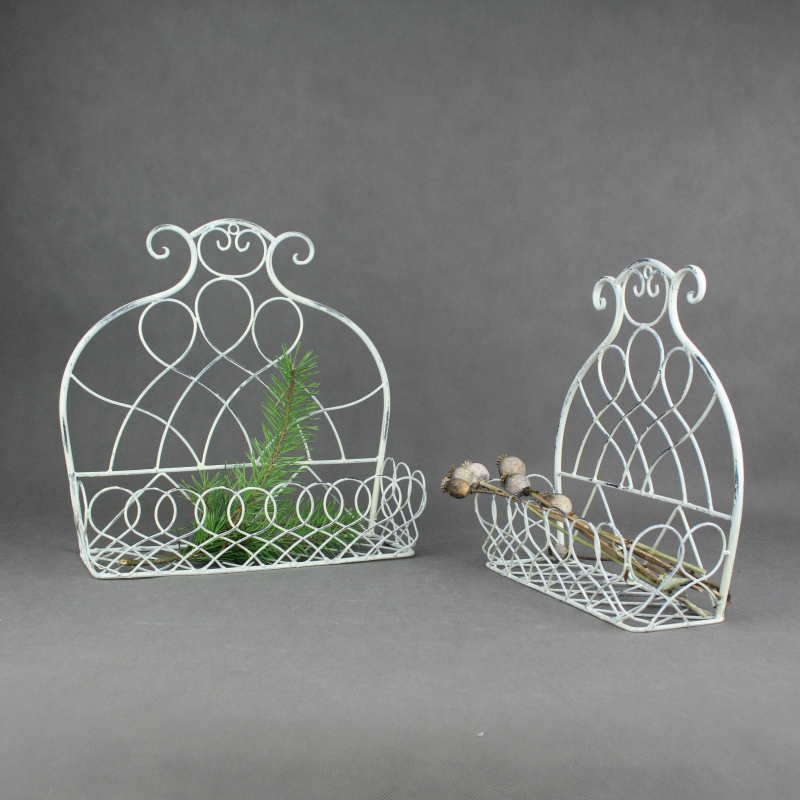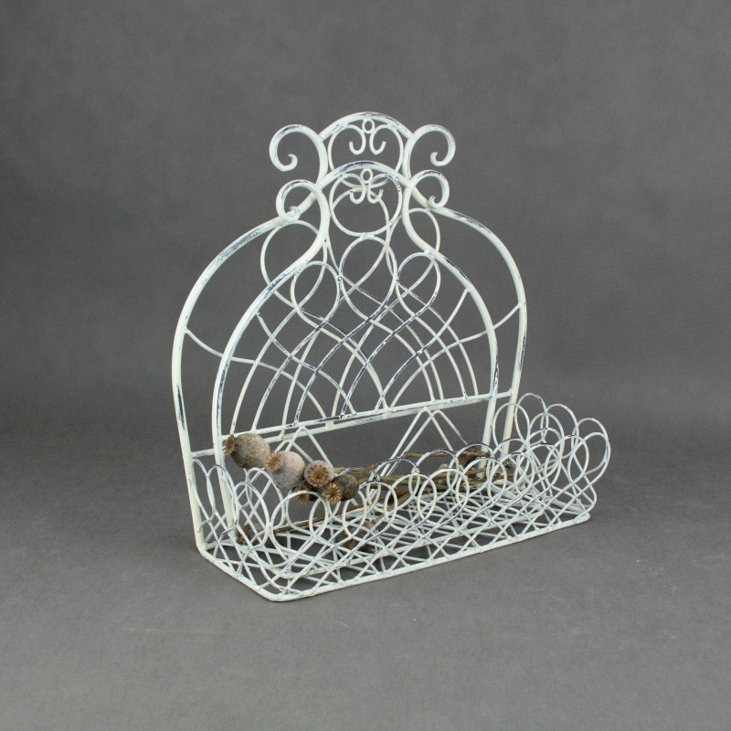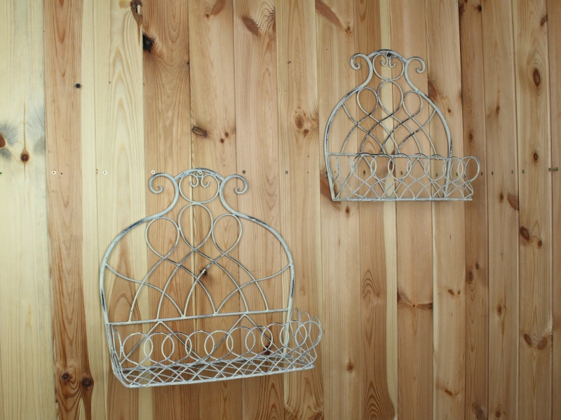 Polička je kovová v bílé barvě s patinou. Polici jednoduše připevníte na zeď pomocí jednoho šroubku.