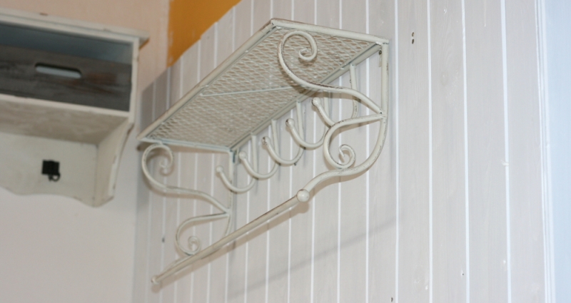 Kovová police s háčky 60cm může sloužit v kuchyni na dózy na potraviny, drobné kuchyňské pomůcky a utěrky, nebo i v předsíni nebo koupelně na textil.