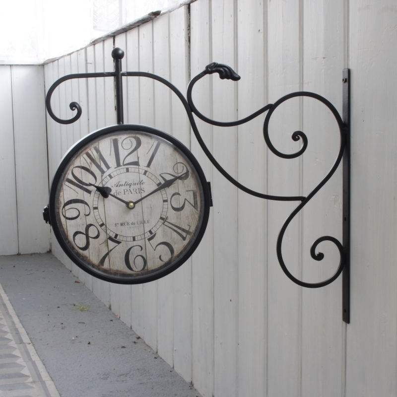 Kovové oboustranné hodiny s velkými čísly 24cm zavěšené na velké zdobené konzoli jsou pěkným doplňkem na stěnu, ale především sloupy a trámy. Nejlépe tak totiž vynikne oboustraný vzhled a čas můžete pozorovat z více míst.