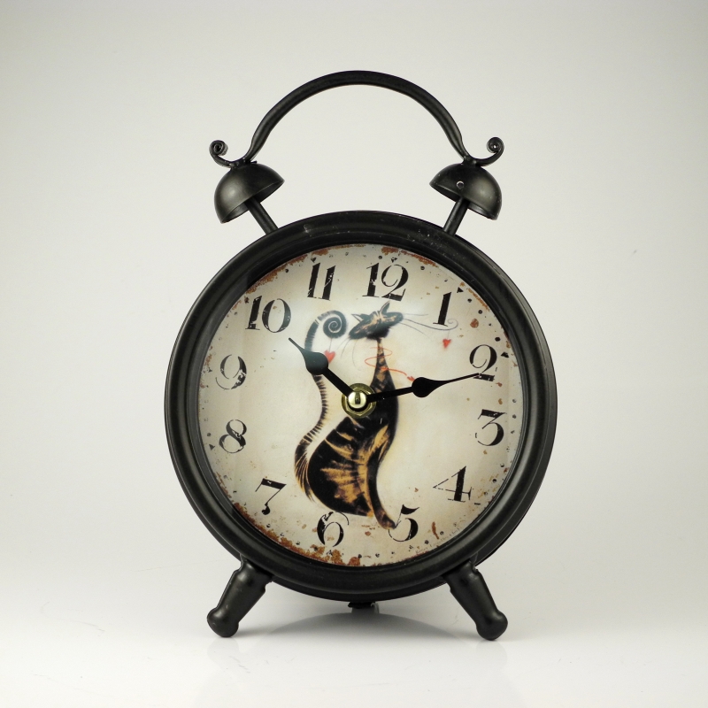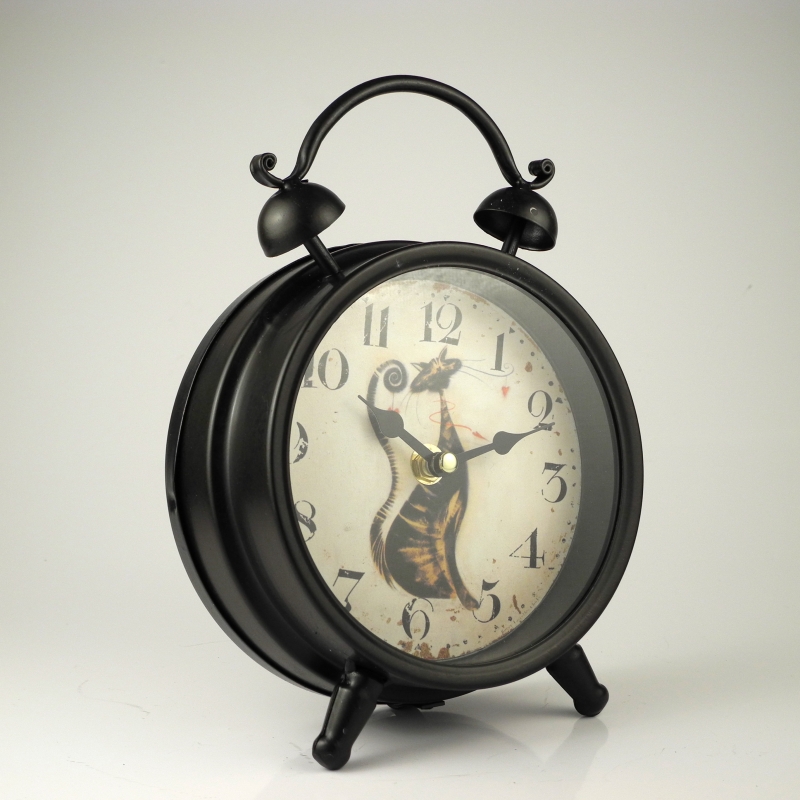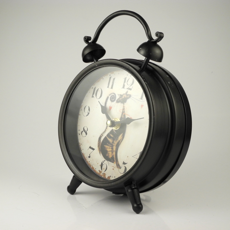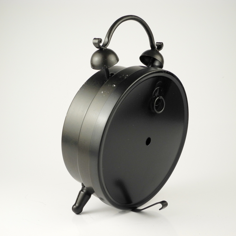 Budík je určen nejenom pro postavení na komodu či stůl, ale i na pověšení. V zadní části je kovové očko. Celá zadní část je i chráněna kovovým krytem hodin. Replika budíku zajišťuje pouze funkci hodin.