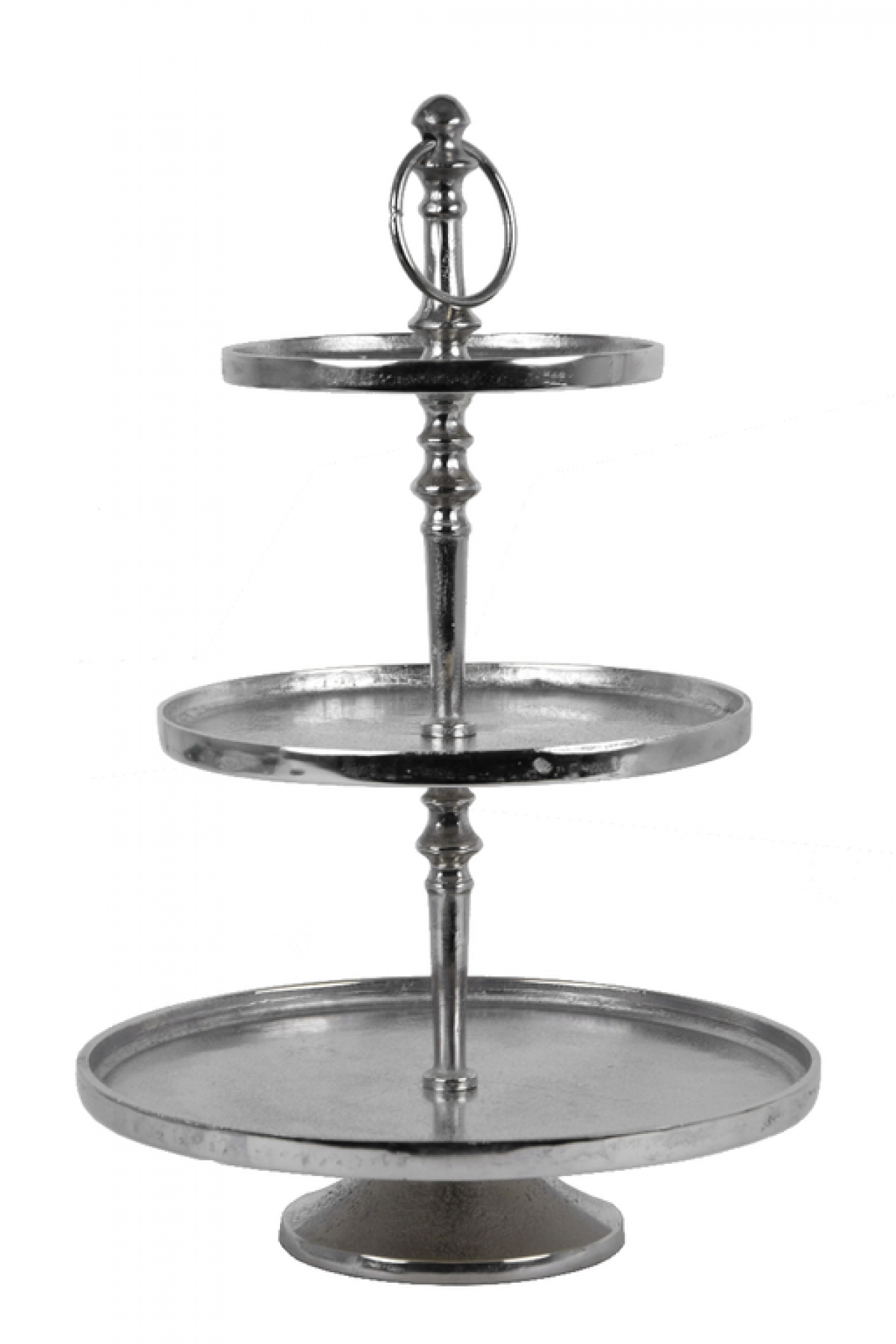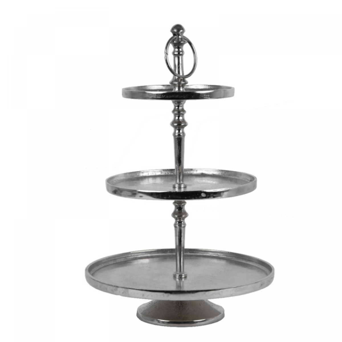 Stabilní třípatrový etažér niklový na cukroví i ovoce.