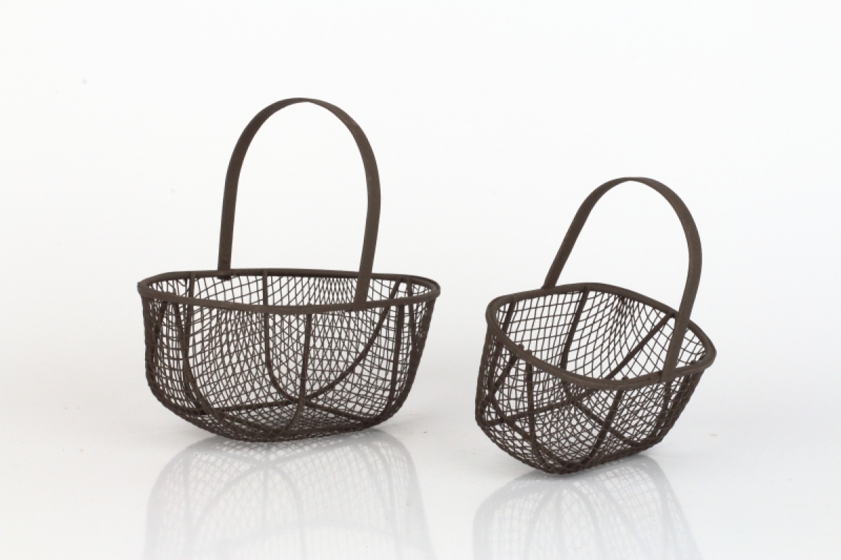 Kovový košík retro hnědý (set 2ks) 11,2/14cm
