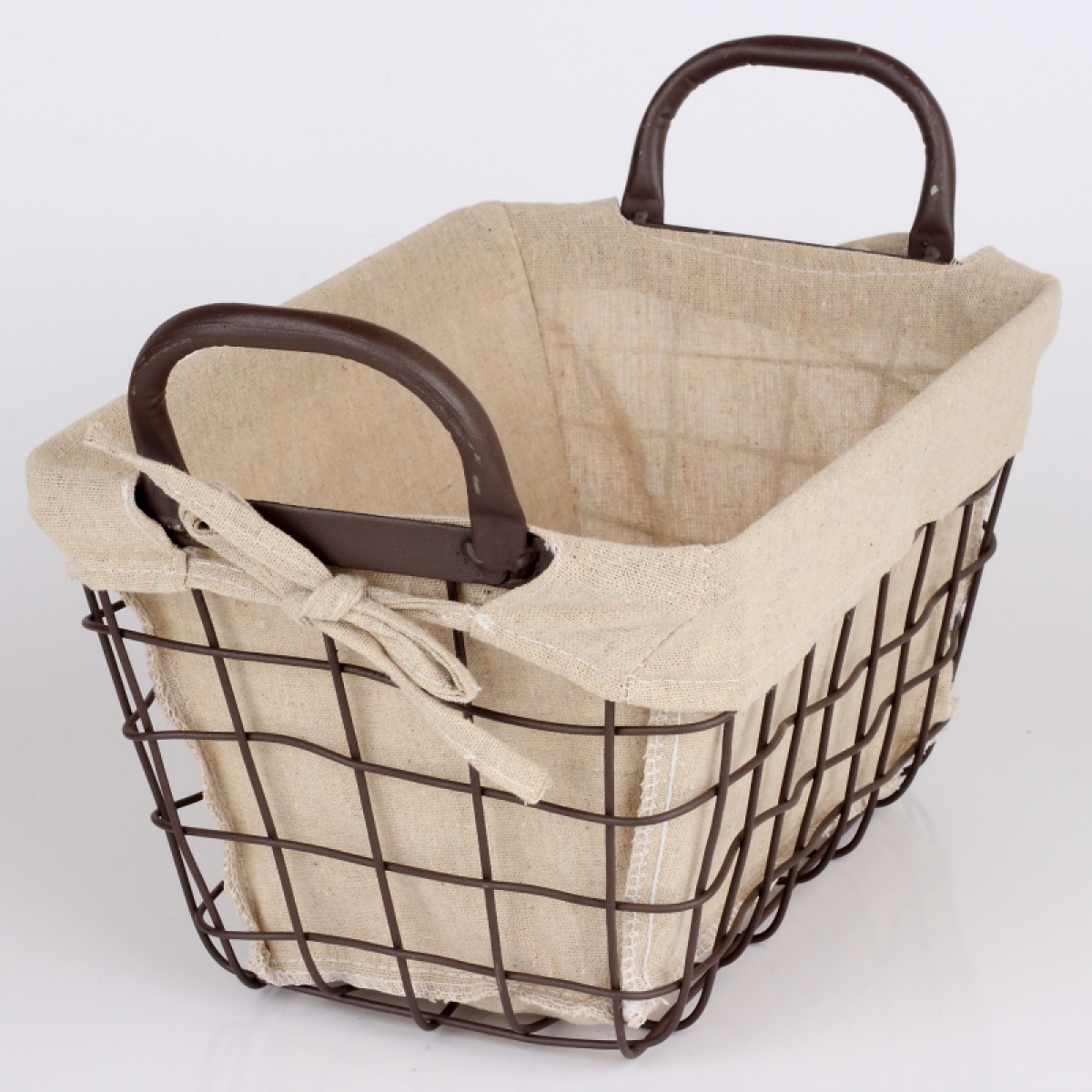 Košík má uvnitř povlak z látky, který je připevněn po stranách mašličkami. Dvě pevná kovová ucha slouží k přenášení a jsou hezkou ozdobou koše.