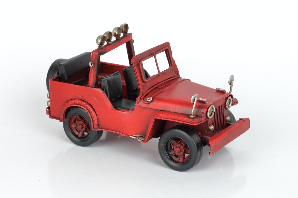 Kovový model červeného terénního džípu je nejen skvělým dárkem, ale i krásnou bytovou dekorací. Bude se vyjímat v obýváku, pracovně, ale třeba i v dětském pokoji.