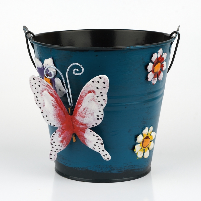 Kovový obal kbelík motýl 17x16cm