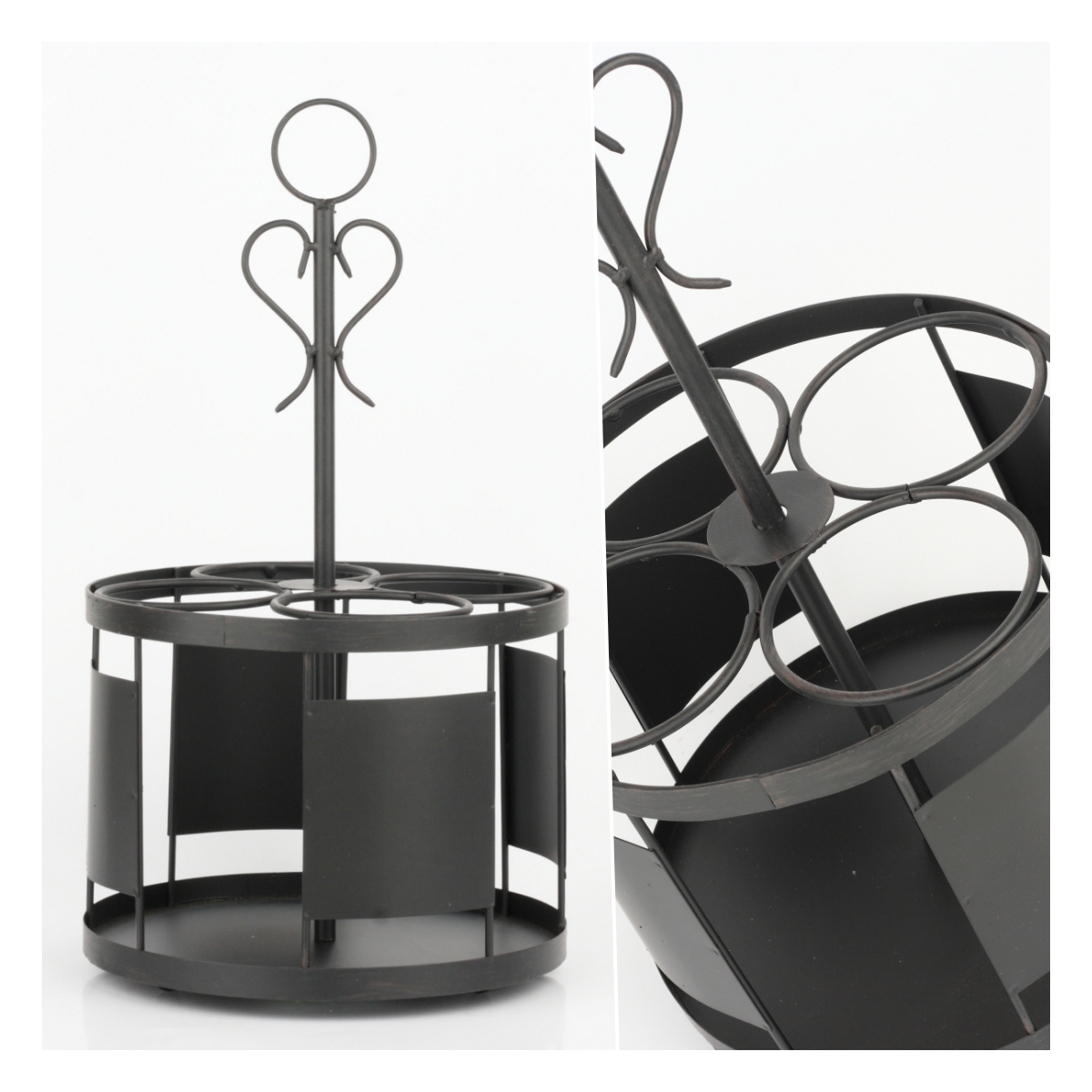 Kovový stojan na 4 lahve vína 40cm vyřeší otázku, kam s koupenými nebo darovanými láhvemi vína. Pokud nemáte vinotéku, mohl by Vám tento stojan na 4 lahve přijít vhod.