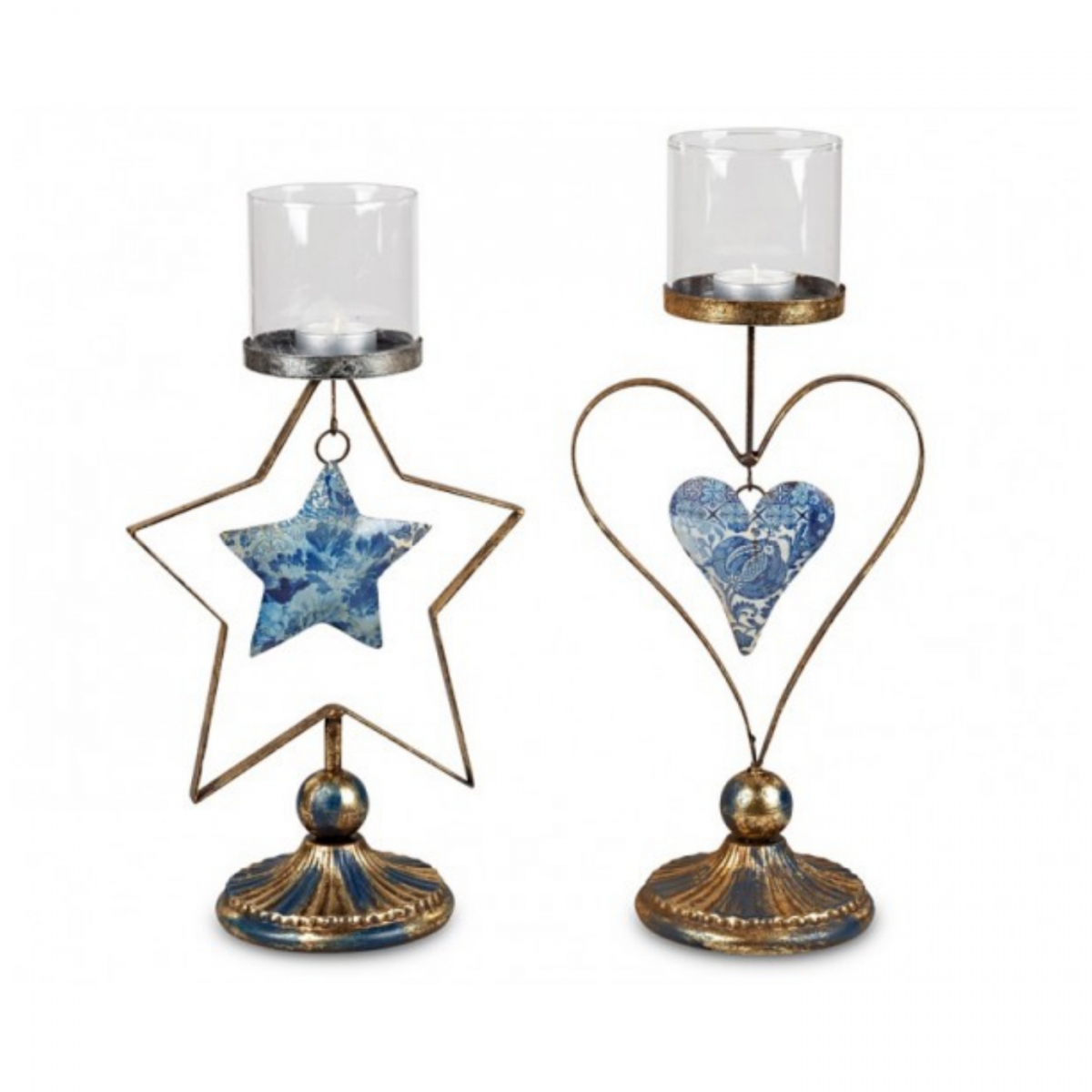 Kovový svícen v sadě dvou kusů, pro celoroční využití. V období Vánoc a předvánočním období bude dominantou místnosti kovový svícen s vánoční hvězdou. Přesto můžete současně rozsvěcet i kovový svícen se srdcem, plným lásky ...