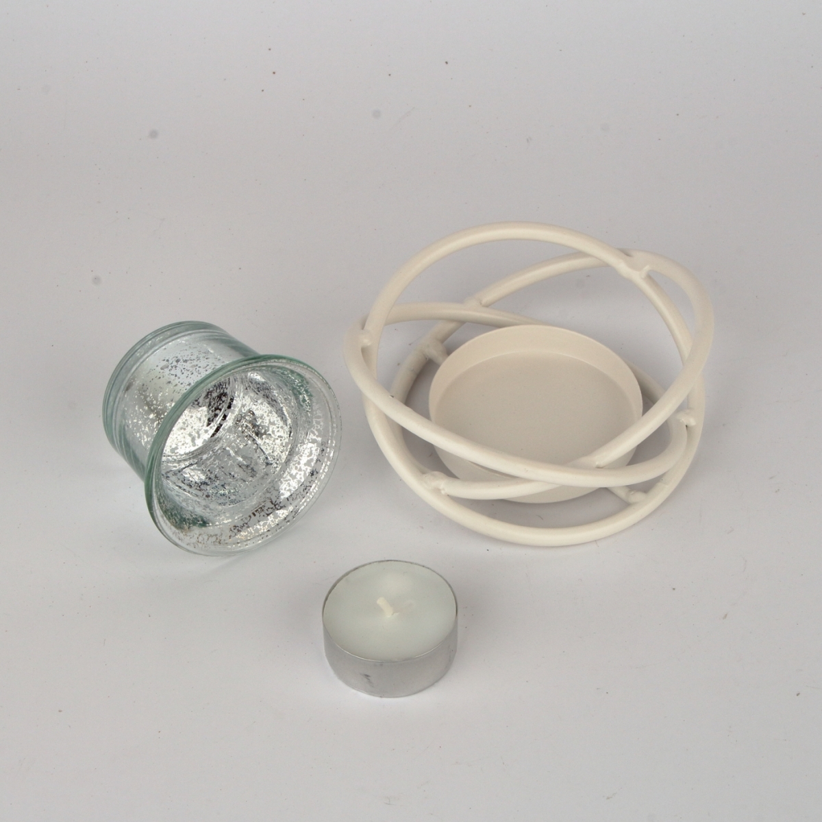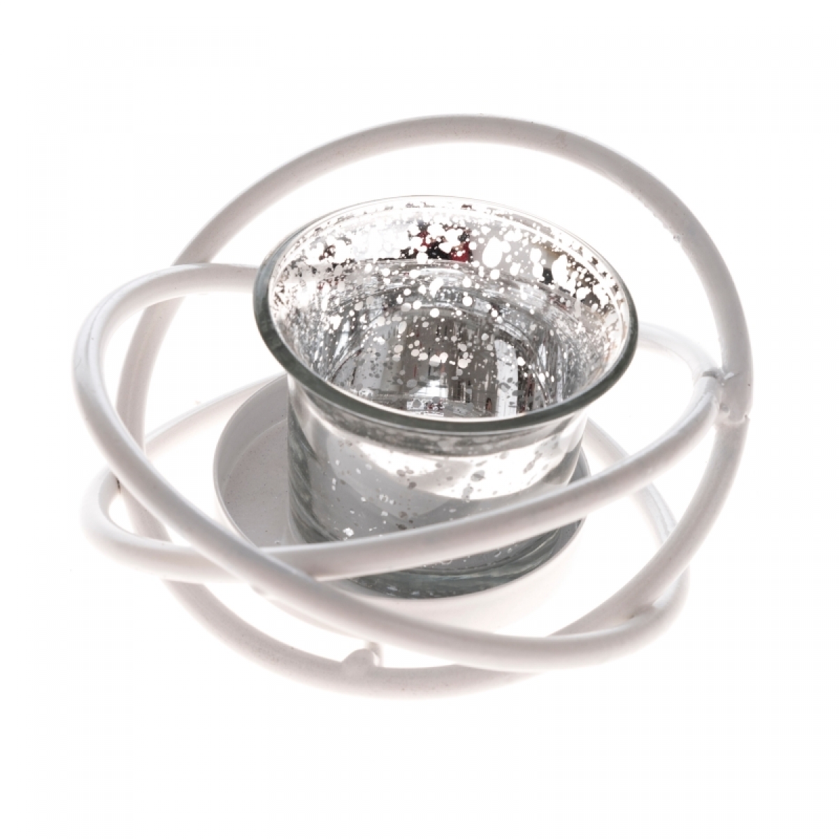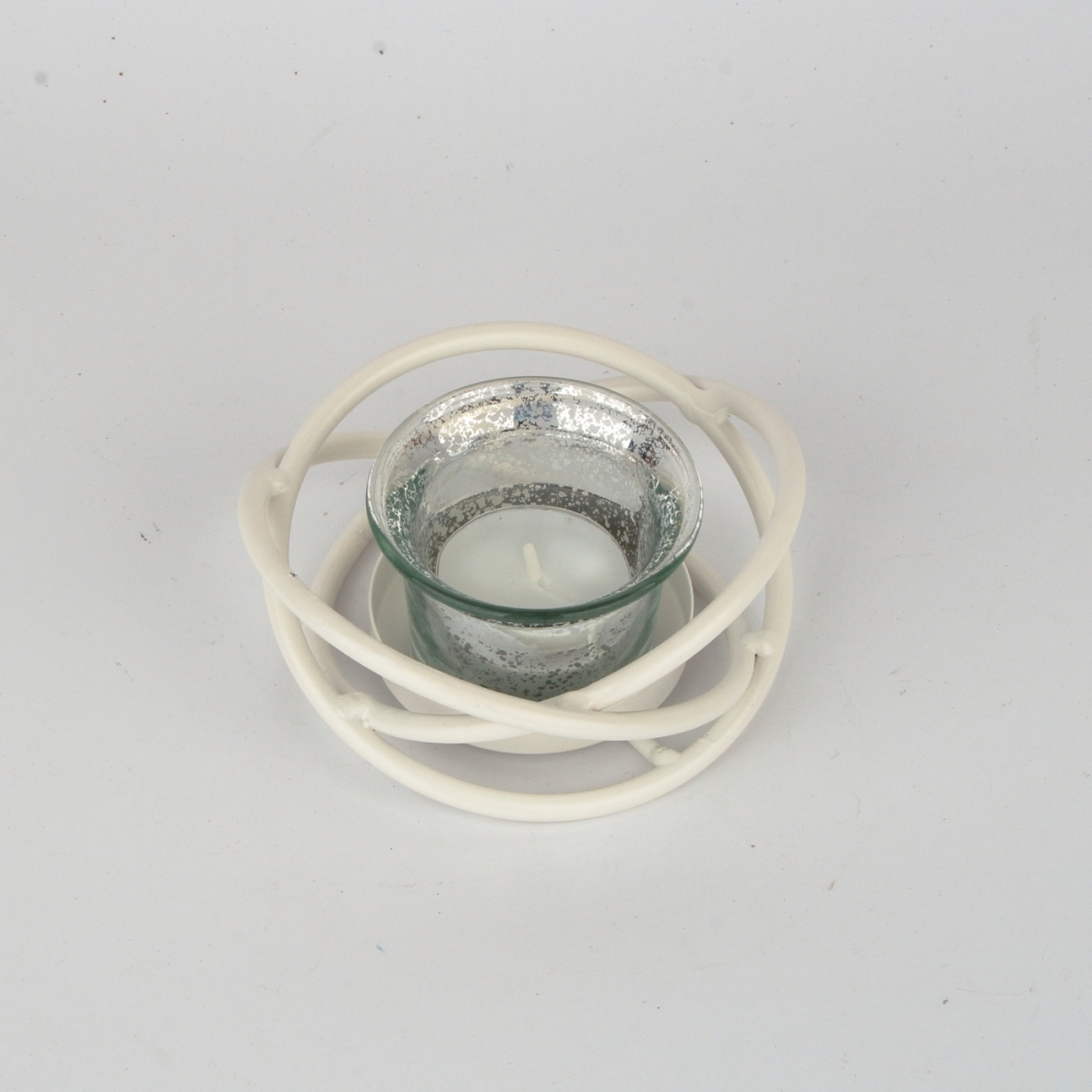 Kovový svícen na 1 čajovou svíčku v bílém kovovém provedení