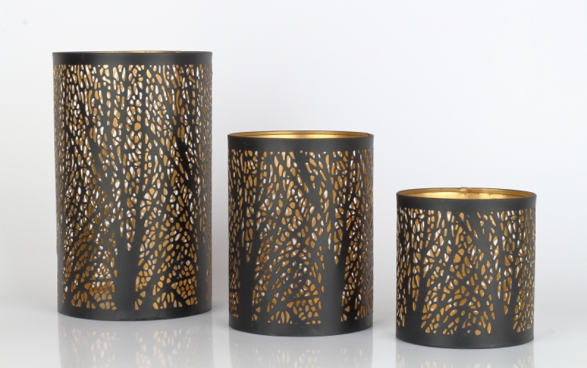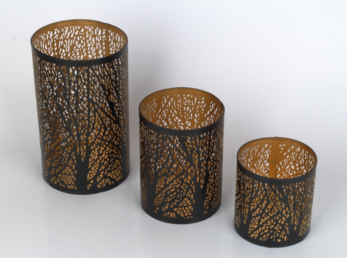 Kovový svícen na čajovou svíčku 15cm připomínající tajemný les vytvoří po zapálení doma příjemnou atmosféru a s vonnou svíčku interiér i příjemně provoní.