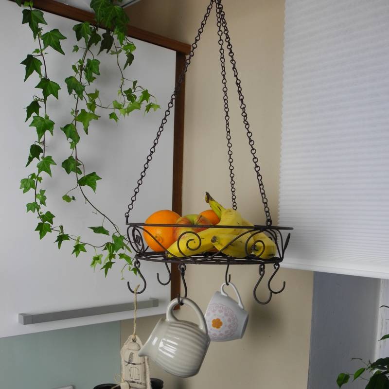 Závěs má kulatý tvar, má celkem 6 háčků pro zavěšení věcí.