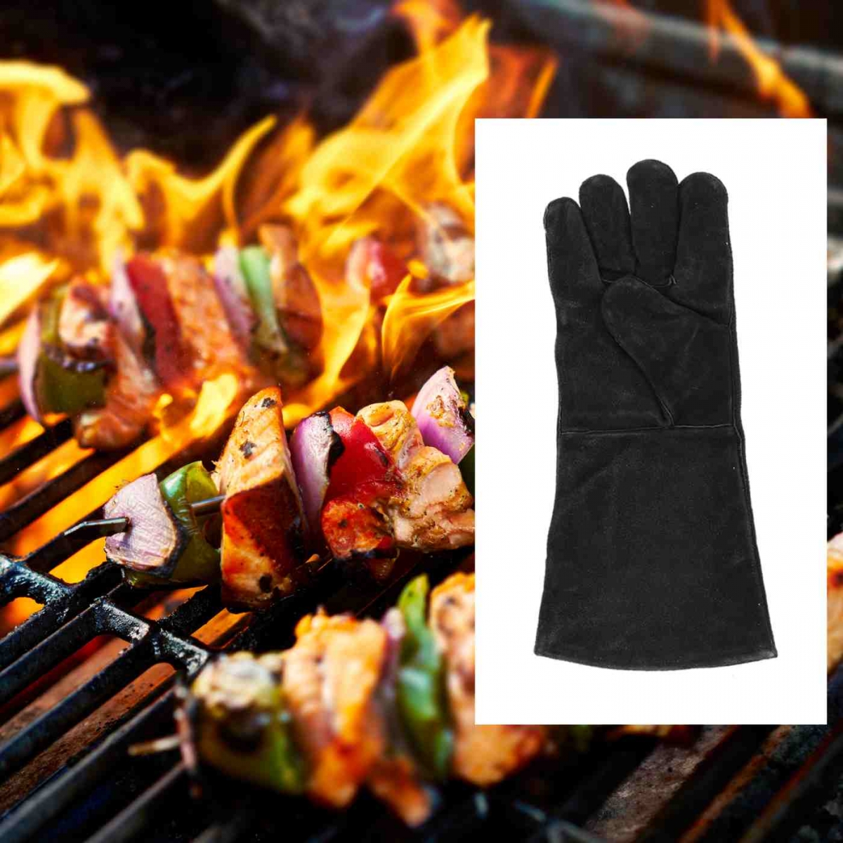 Kožené rukavice pár ideální na grilování, které ochrání vaše ruce i v těsné blízkosti ohně.
