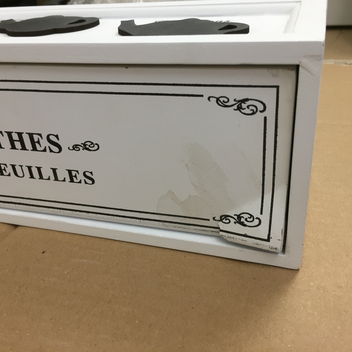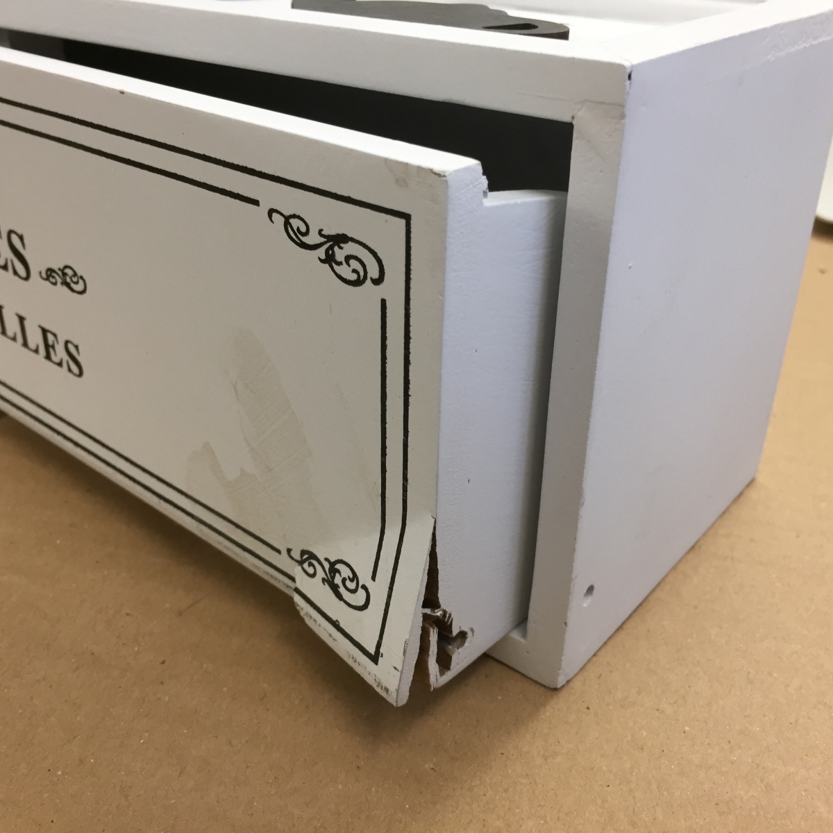 Vyřazeno z důvodu poškození konstrukce. Krabičku lze slepit a v místě otevírání opravit vložením špejle v místě otevírání.