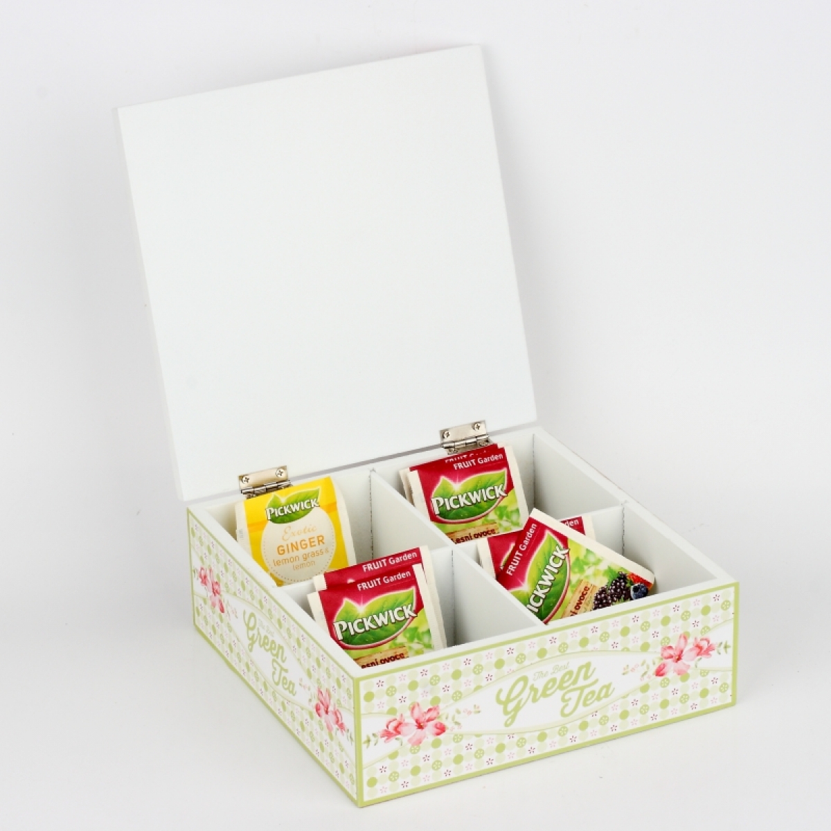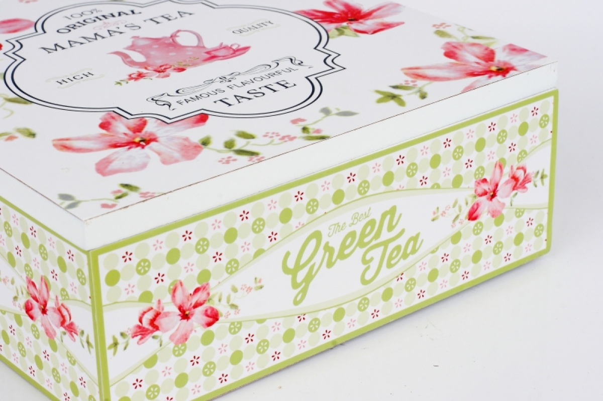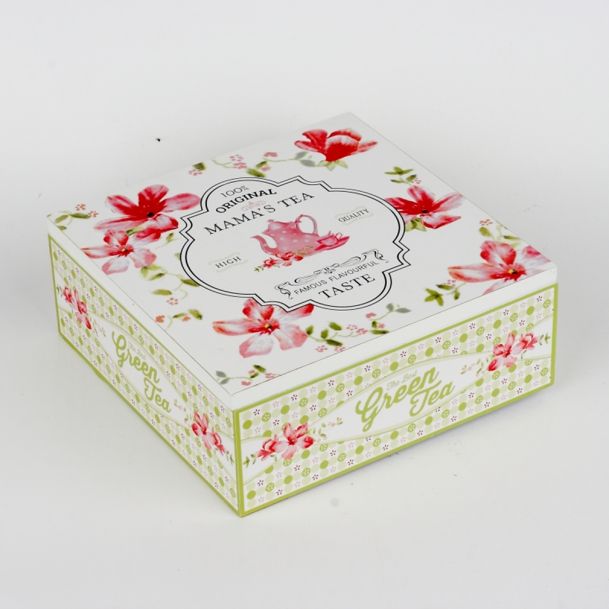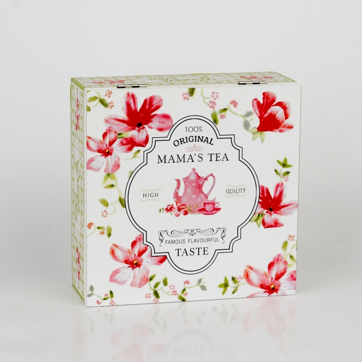 Krabička na čaj s květinami 18x18x7cm se 4 přihrádkami na Vaše oblíbené čaje.