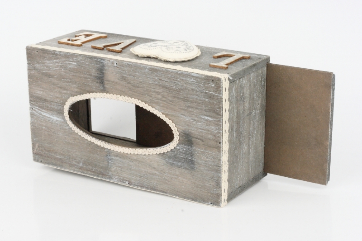 Krabička na papírové kapesníky LOVE 24x13x9,5cm ukryje nevzhlednou papírovou krabici a kapesníky budete mít vždy po ruce. Nebudete je totiž už muset schovávat ve skříni nebo šuplíku.