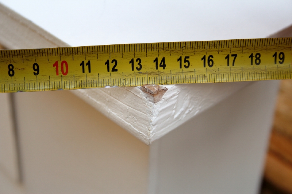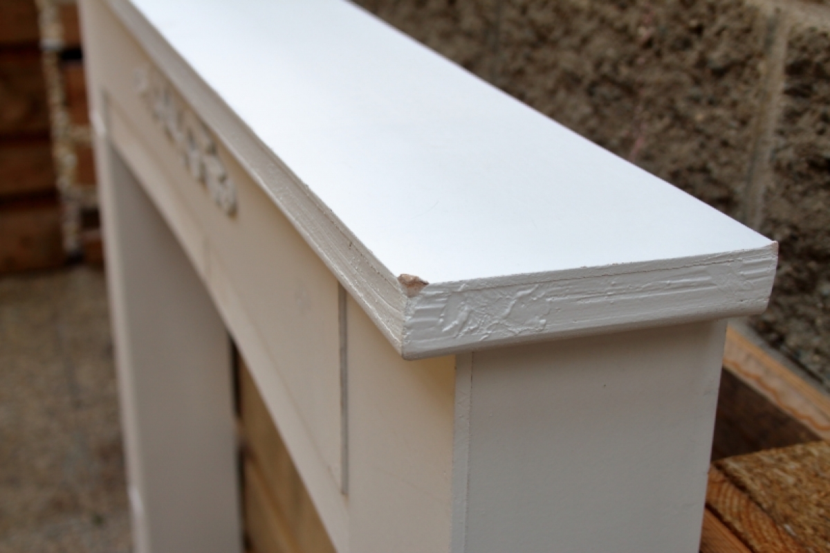 Krbová římsa vyřezená z důvodu nedokonalostí. Drobné oděrky, které nebrání běžnému užívání a lze je snadno odstranit křídovým prachom a bílou barvou.