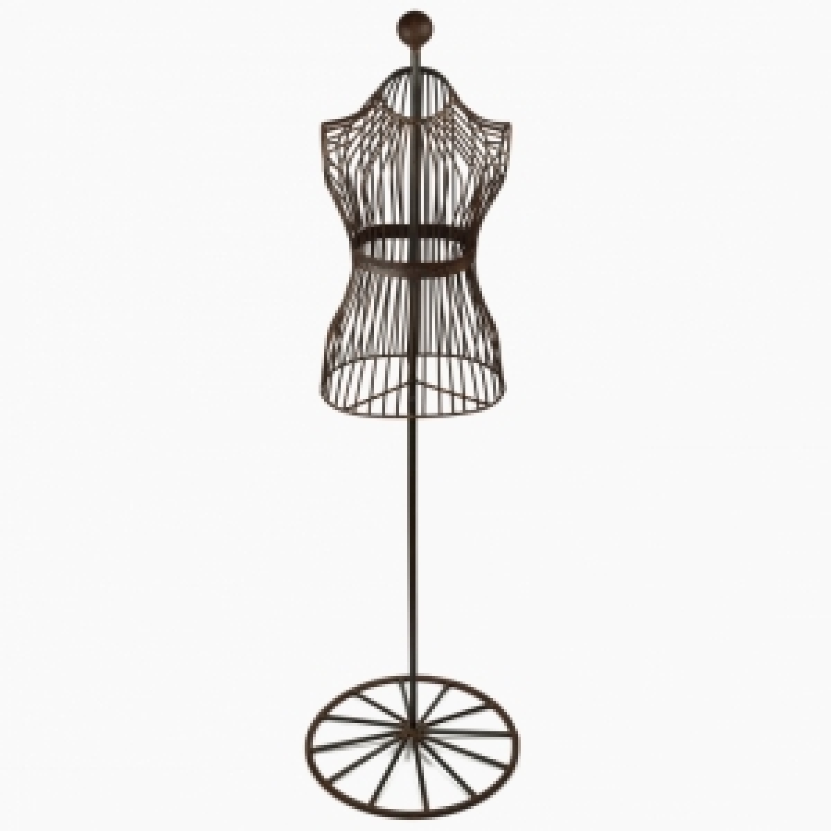 Výška včetně stojanu 160 cm. Výška figuríny krejčovské panny 70 cm, šířka 38cm, hloubka 20cm. Průměr litinové podesty je 50cm. Váha cca 8kg.