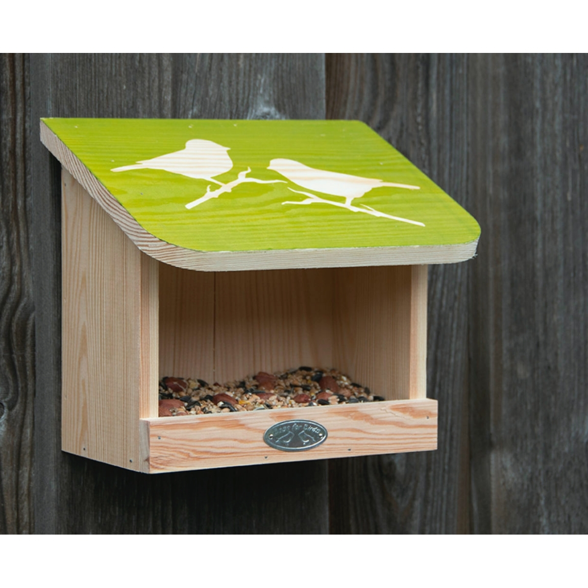 Krmítko nabízí ptákům příjemné místo ke krmení. Otevřená konstrukce umožňuje ptákům přistupovat ke stolu ze tří stran. Odklápěcí střecha udržuje potraviny suché.
