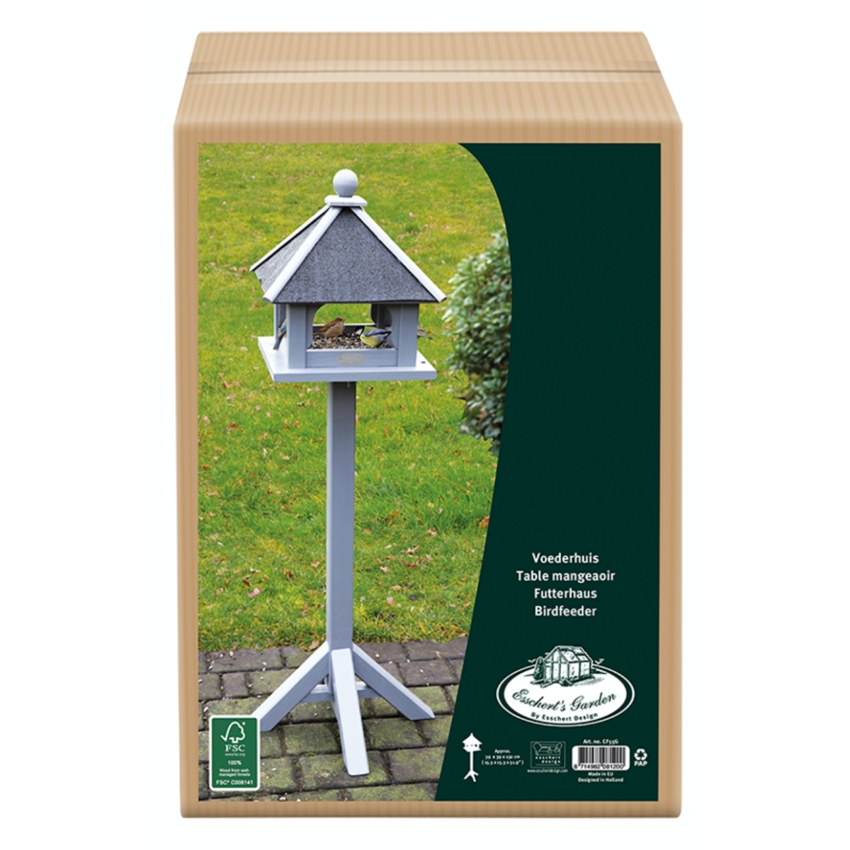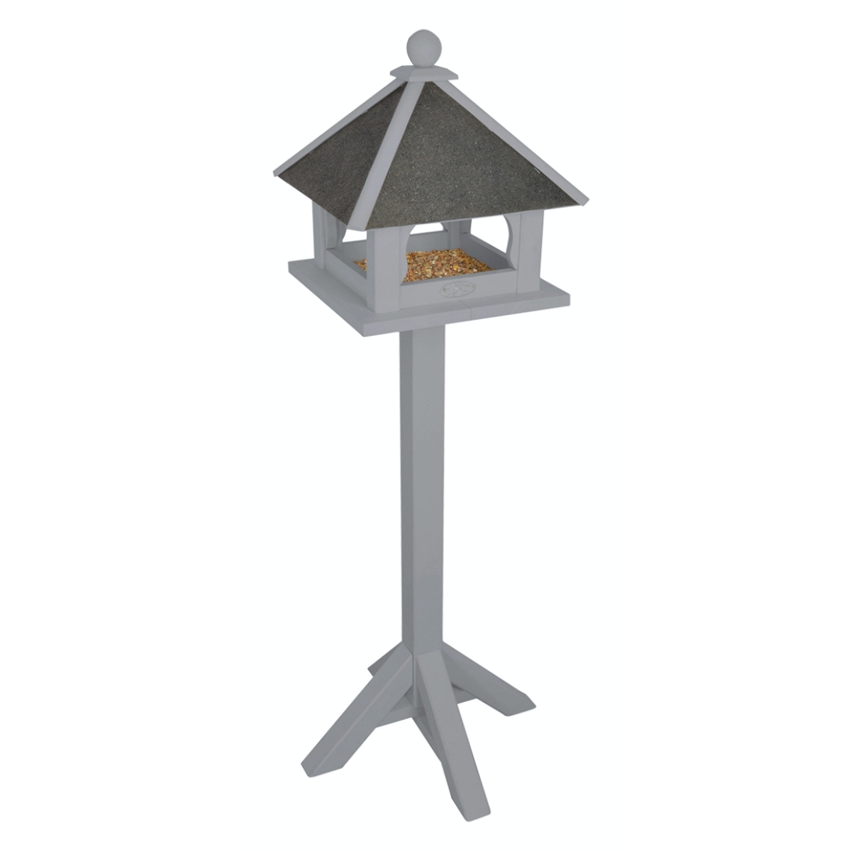 Krmítko na noze má otevřenou konstrukci a umožňuje tak čtyřnohým opeřencům volný přílet ze všech směrů. Je vyrobené z kvalitního borového dřeva v šedém barevném provedení. Čtyřnohá základna zajišťuje krmítku stabilitu na jakémkoliv povrchu.