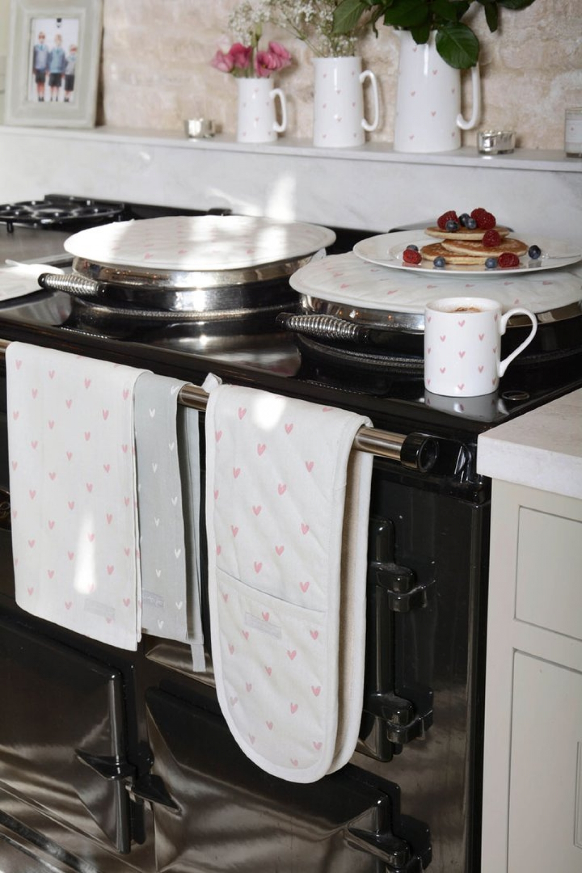Kuchyňská chňapka ve dvojitém provedení s potiskem srdíček