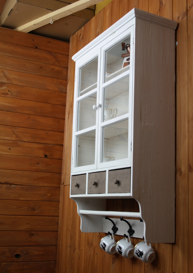 Tato nádherná skříňka se stane velmi jednoduše nepostradatelnou součástí jakékoliv kuchyně. Spousta místa na ukládání dóz spotravinami, šuplíčky na sáčky s kořením a praktické háčky na kuchyňské doplňky, hrníčky i utěrky.