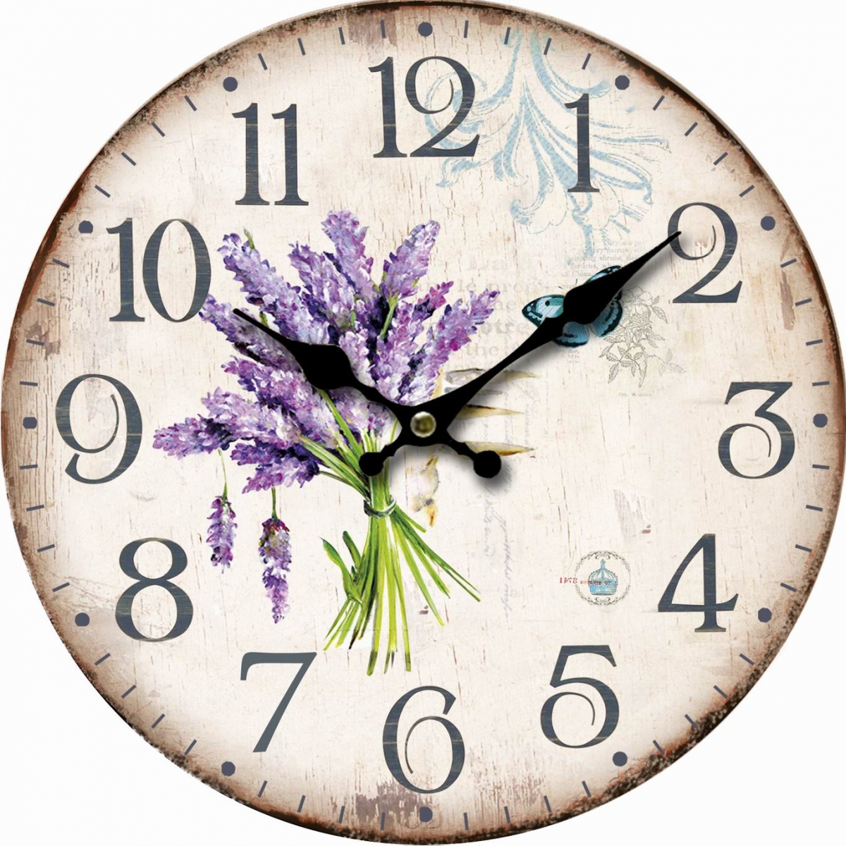 Kuchyňské hodiny na zeď s jemným levandulovým motivem