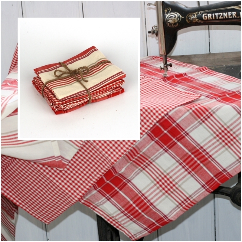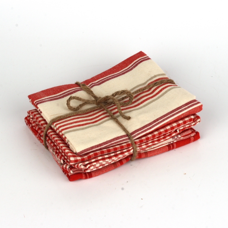 Balení obsahuje tři utěrky laděné do červených tónů a vzroy, které jsou typické pro venkovskou kuchyni.