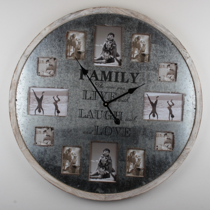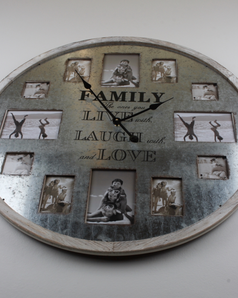 Kulaté nástěnné hodiny s rámečky na fotografie FAMILY 80cm