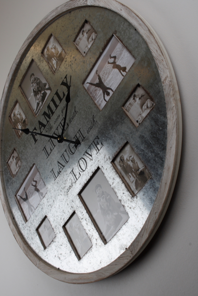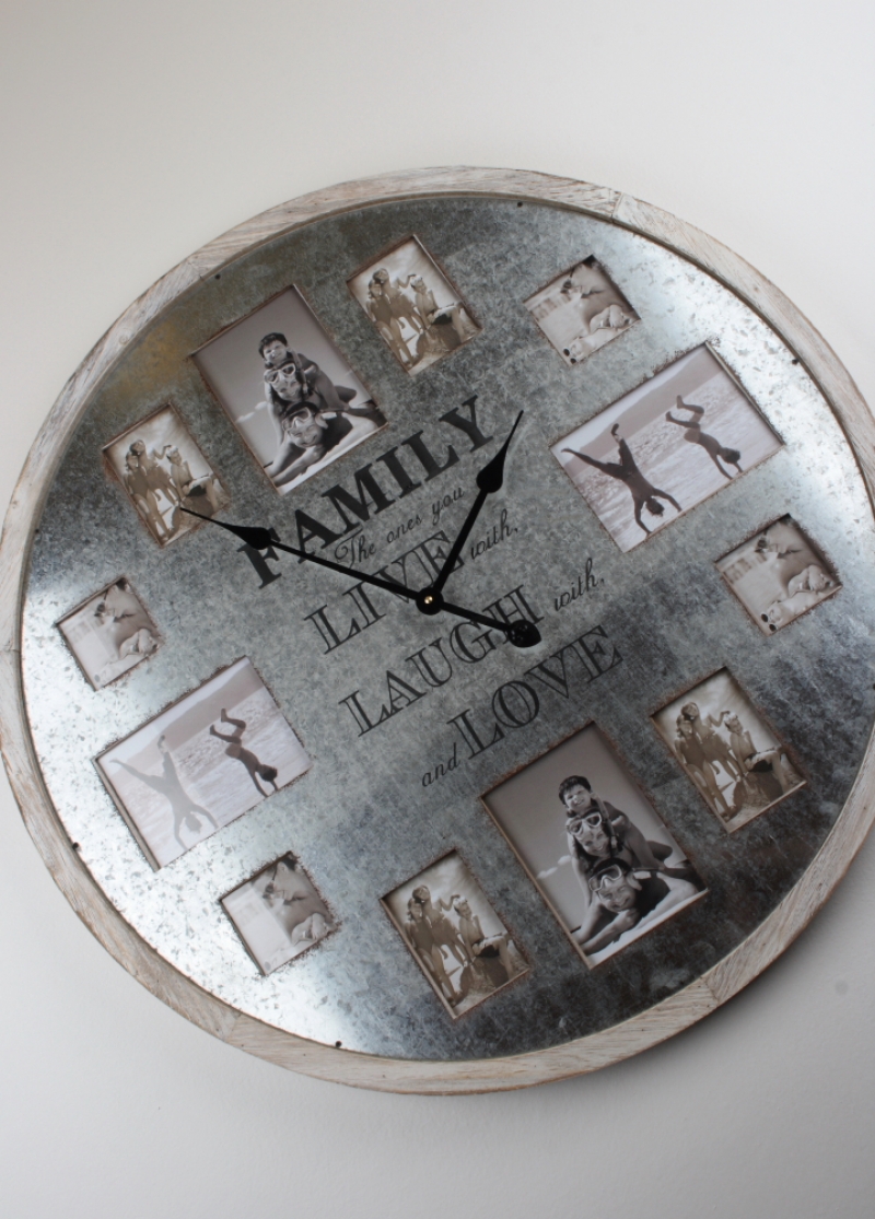Kulaté nástěnné hodiny s rámečky na fotografie FAMILY 80cm nejsou jen tak ledajaké nástěnné hodiny. Tyto se díky Vašim fotografiím promění v jedinečné hodiny s duší. Fotografie vašich blízkých nebo z dovolených tak budete mít každý den na očích a budou vám dělat radost den co den.