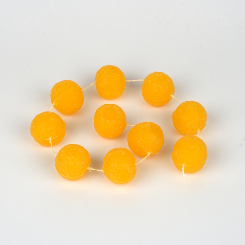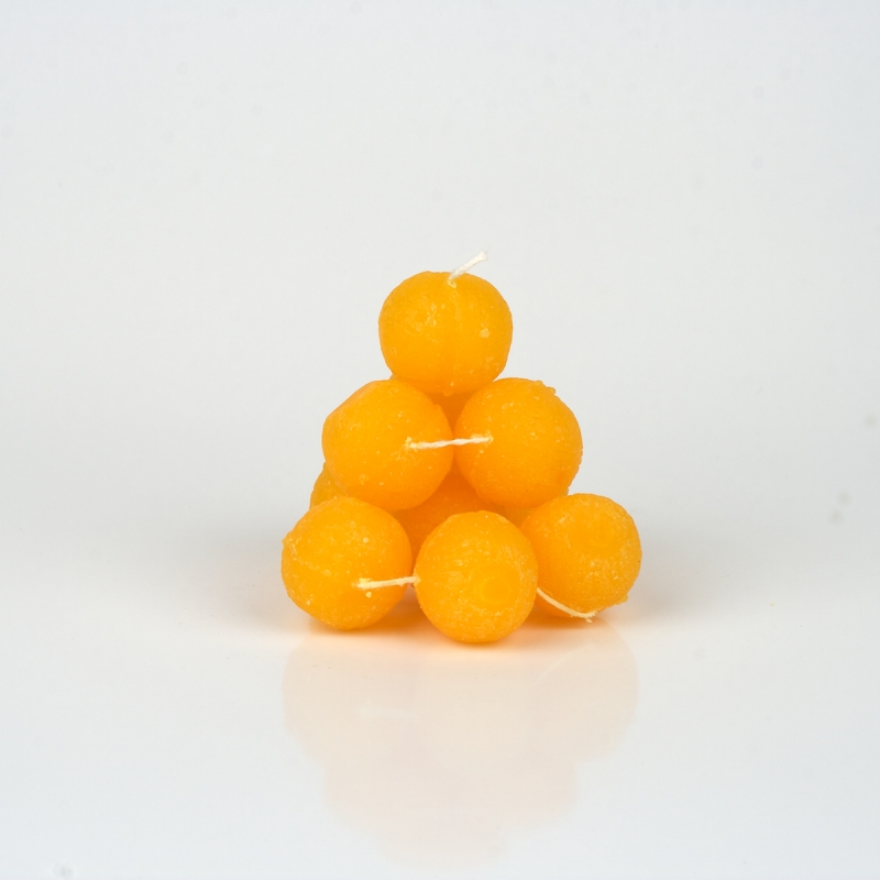 Kuličky svíce žlutá. Kovový svícen není součástí balení.