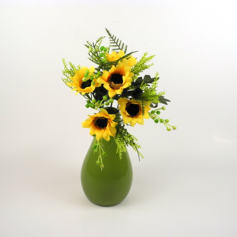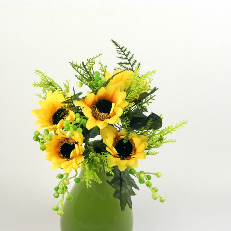 Květina umělá slunečnice. Výška 25cm. Rozpětí kytky ve váze: průměr 20cm. Vázička není součástí slunečnice. Vázičku naleznete pod katalogovým číslem DEK1204